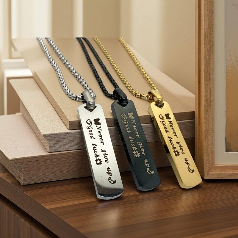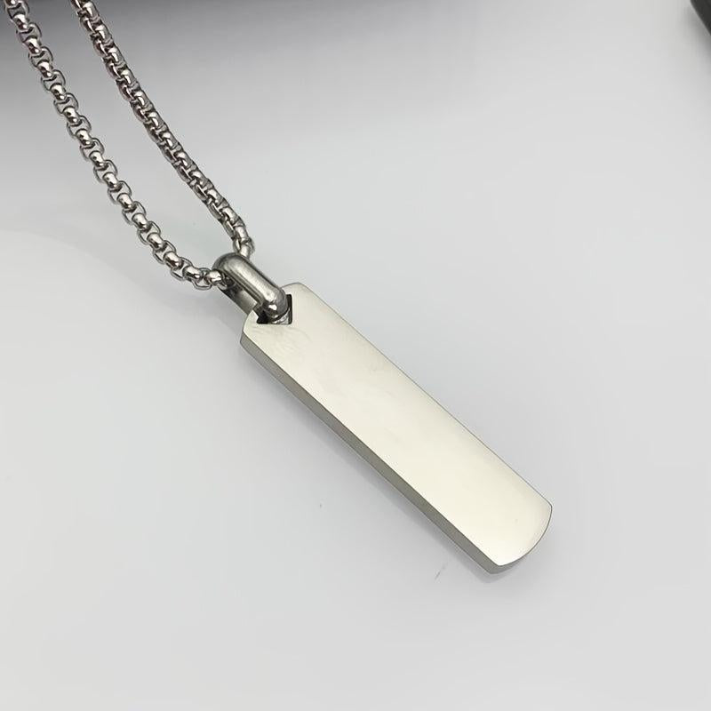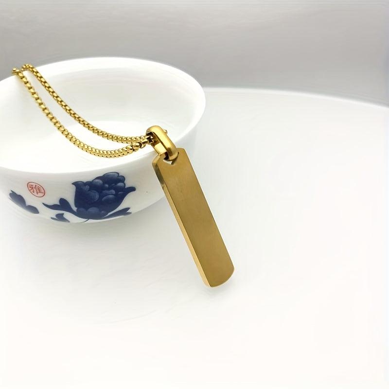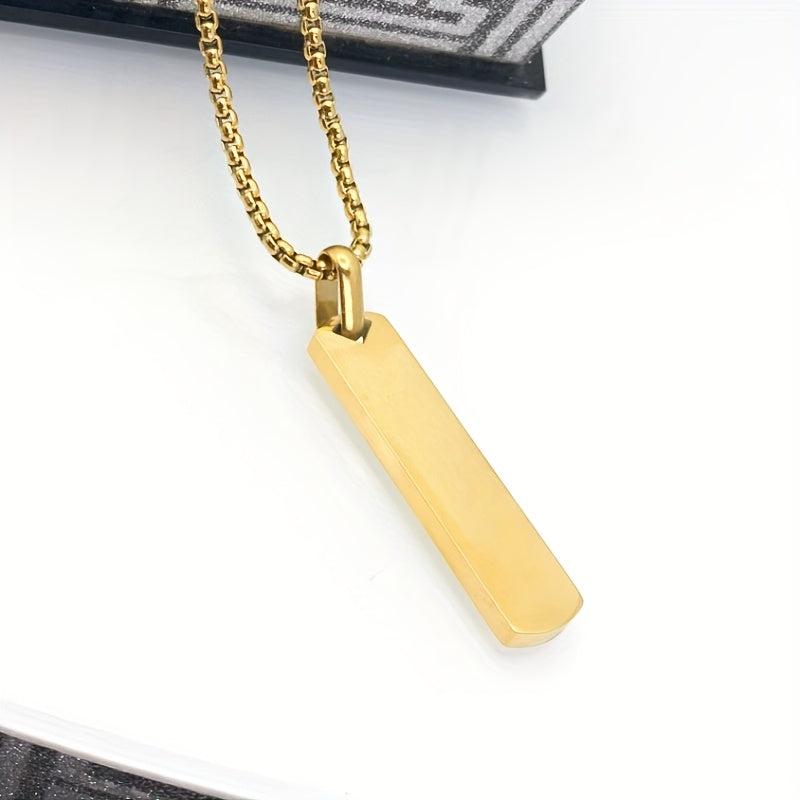 This sleek stainless steel bar necklace is perfect for everyday wear. Its minimalist design makes it a versatile piece that can be worn solo or layered with other necklaces. The tarnish-proof material ensures long-lasting shine.
