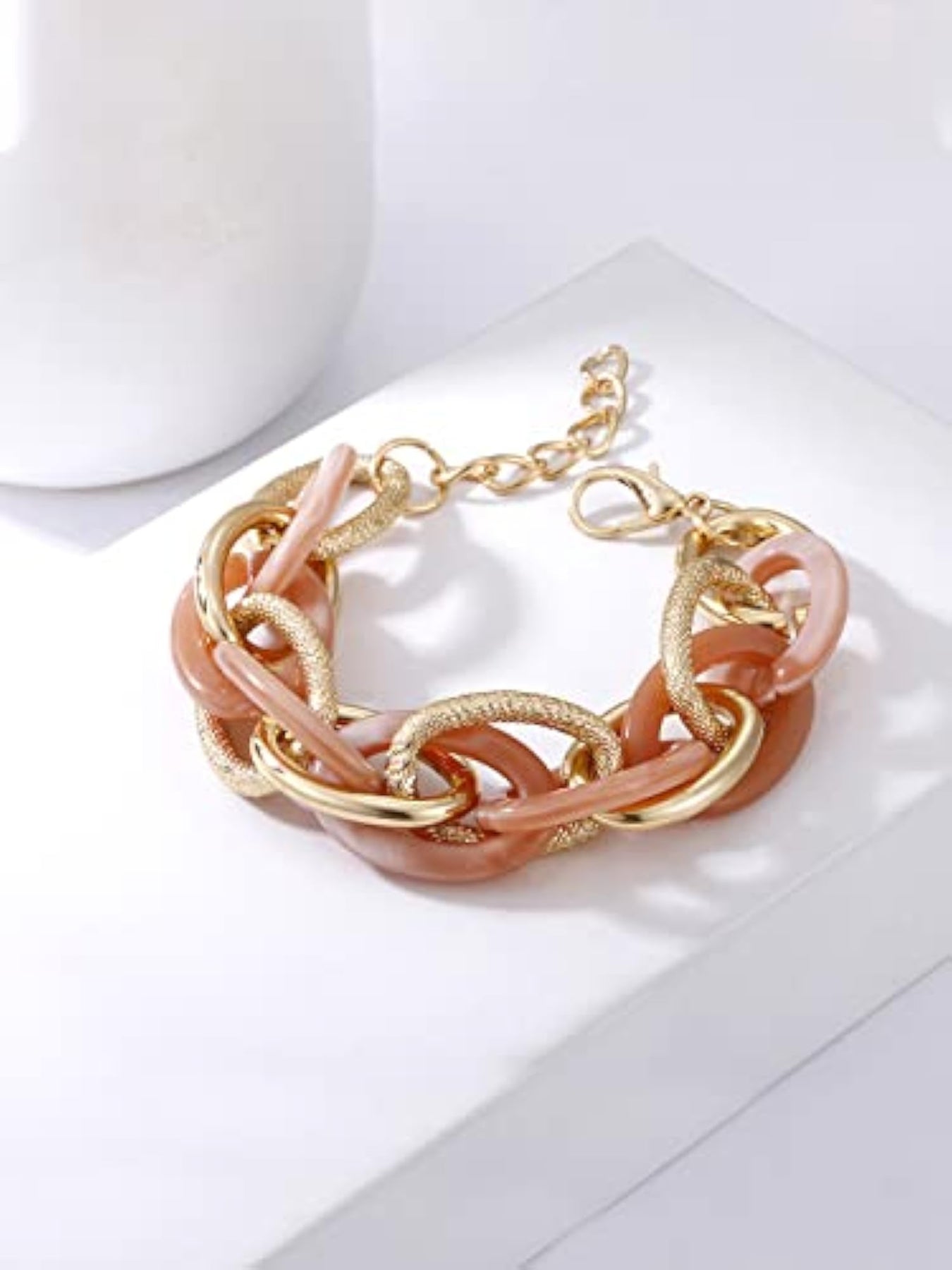 This stylish bracelet is made of high-quality stainless steel with a plated finish.
