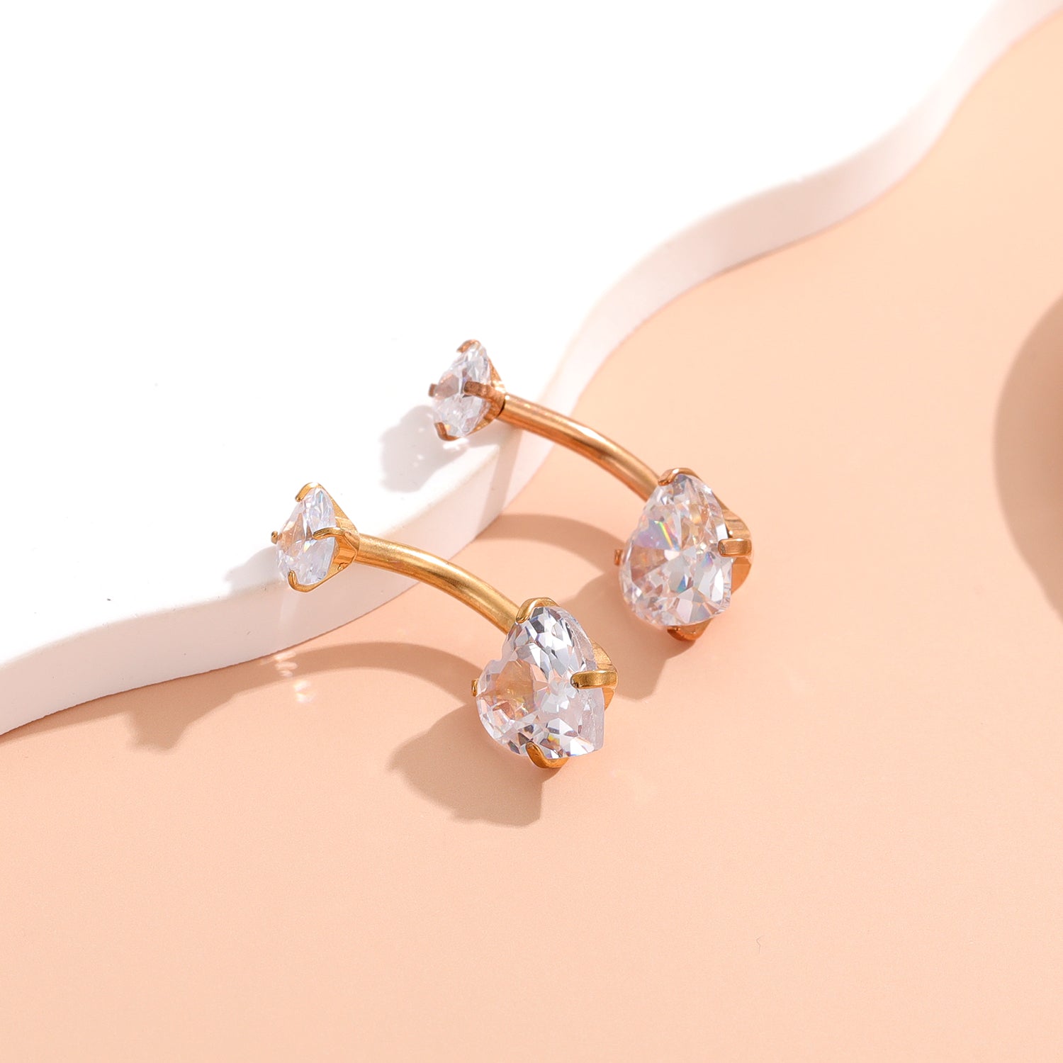 Enhance your style with this stunning stainless steel belly button ring featuring sparkling rhinestones. A perfect accessory for any outfit.