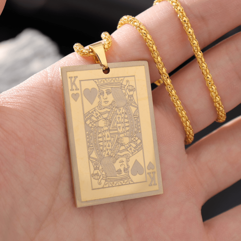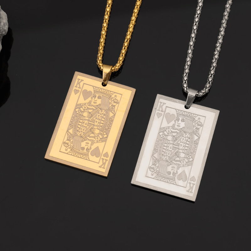 This stainless steel card pendant necklace is a stylish accessory for men. It adds a touch of elegance to any outfit.