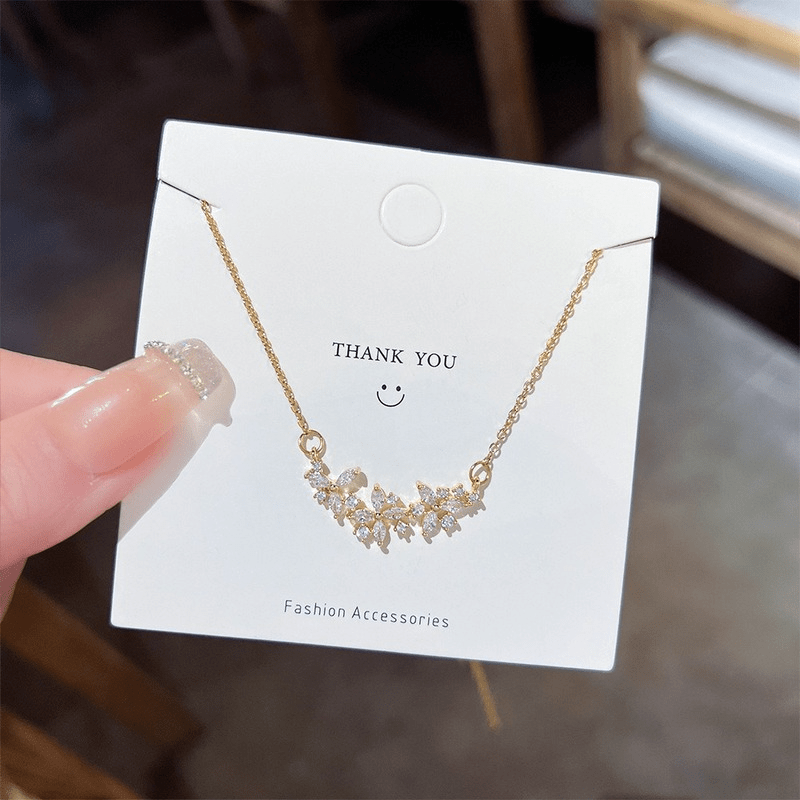 This elegant stainless steel necklace features a flower petals shape pendant with zirconia embellishments. It is a perfect jewelry gift for women.