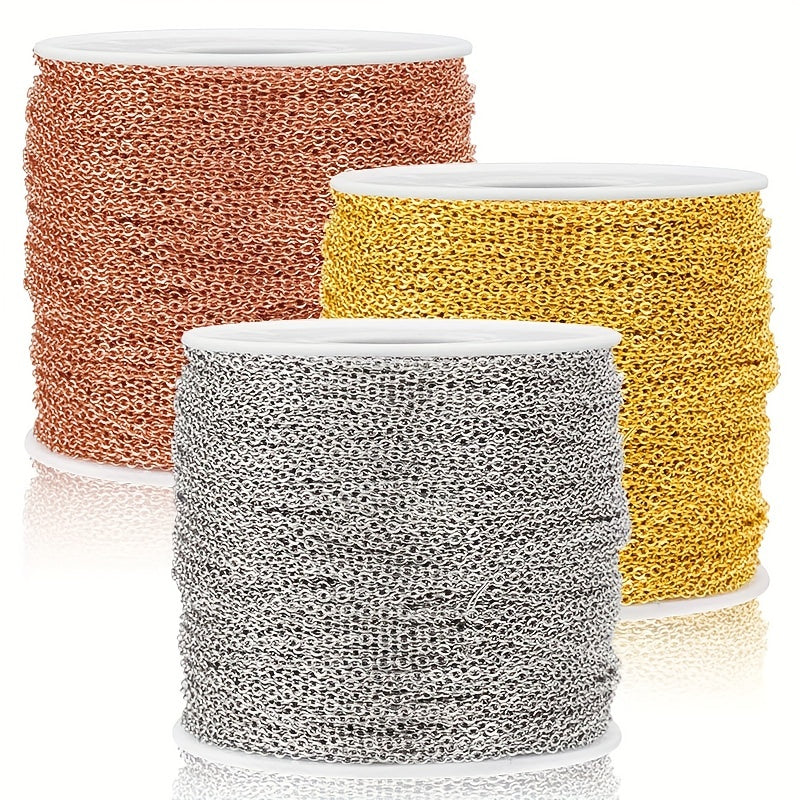 This stainless steel chain features a pressed O cross design and rose plating, perfect for creating your own necklace pendant. It is a universal chain that can be easily customized to match your style.
