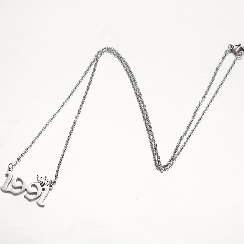 This stainless steel necklace features a classic English words about years number pendant. It's a perfect birthday gift for someone special.