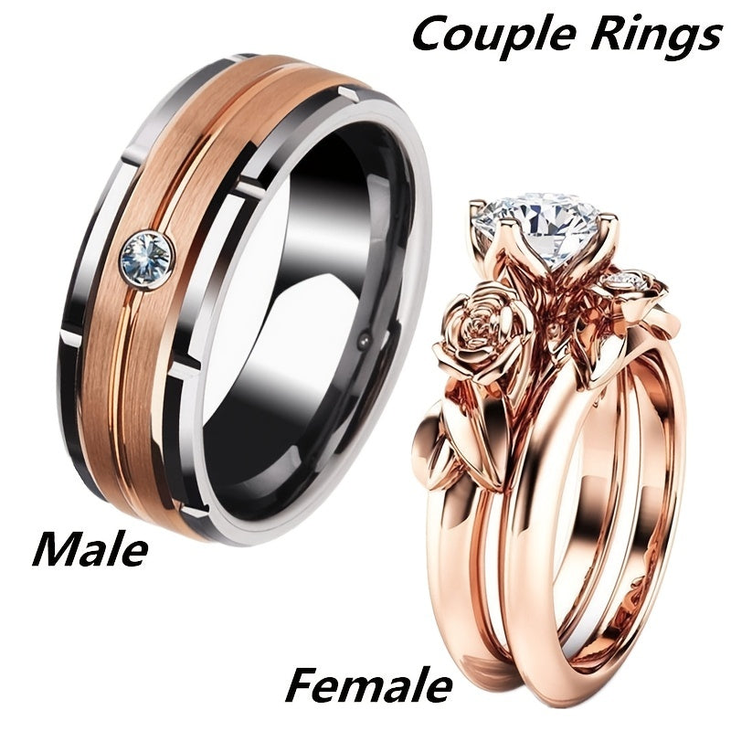 This classic couple ring is a symbol of love and commitment, crafted from high-quality stainless steel. Perfect for bridal and wedding engagements.