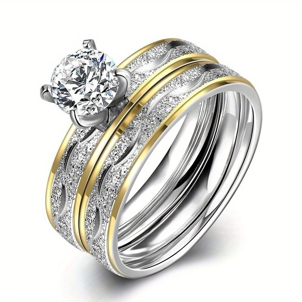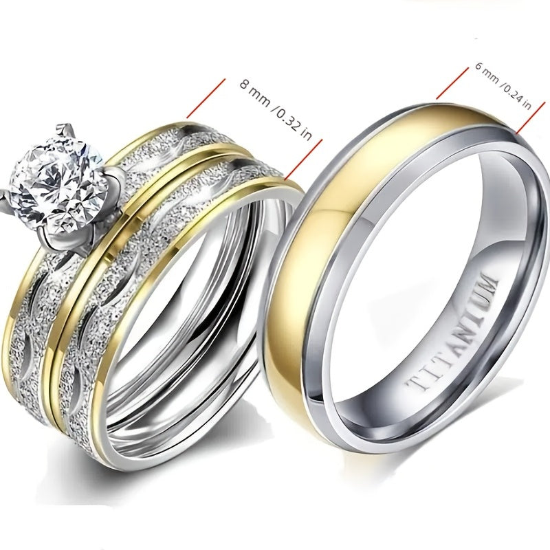 This beautiful set of stainless steel couple rings features a dazzling zircon combination. Perfect for expressing love and commitment, these rings are ideal for couples.