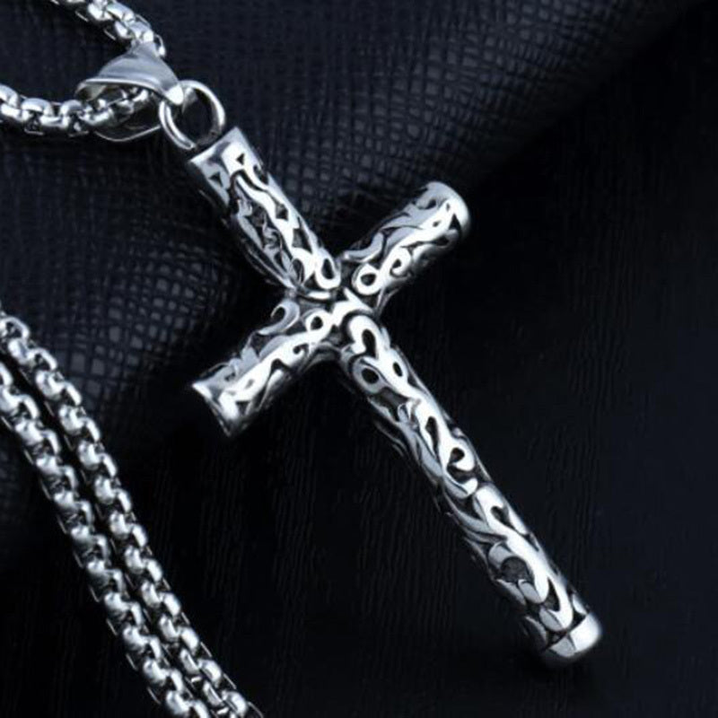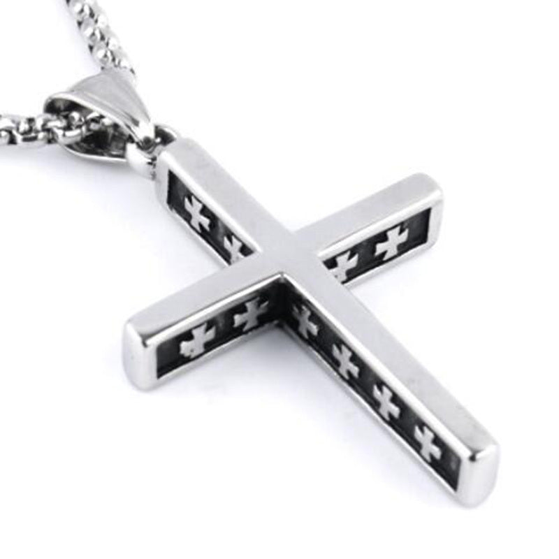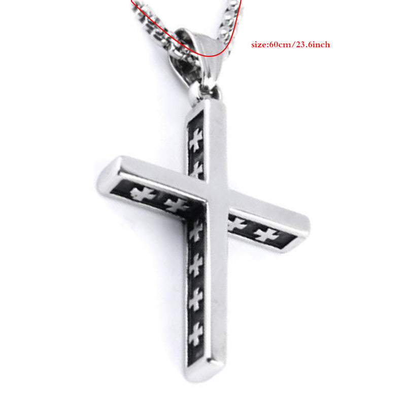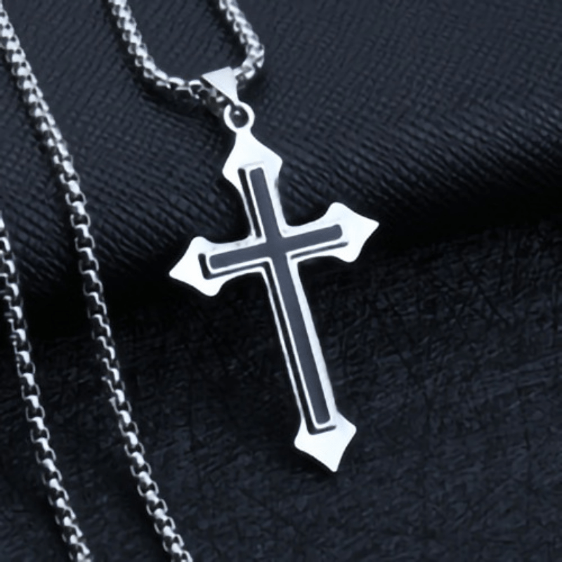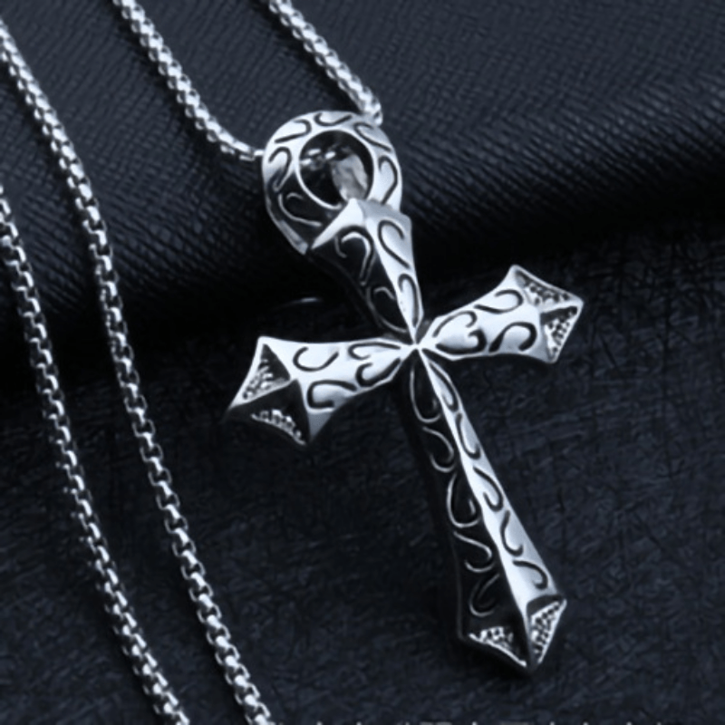 This funky pendant necklace features a mix of retro designs including a cross, arrow, hexagon, and star shapes. Ideal for men and women who love unique accessories.