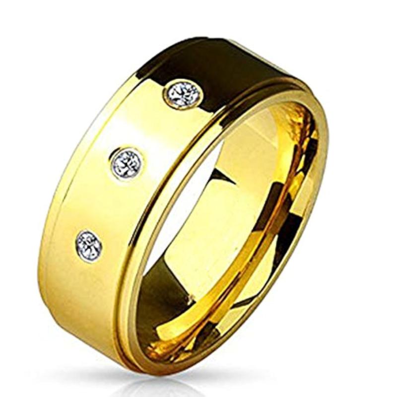 Elegant stainless steel band ring with crystals, perfect for proposals, engagements, and weddings.