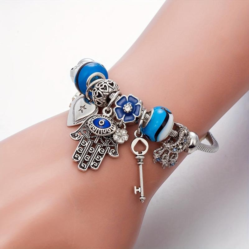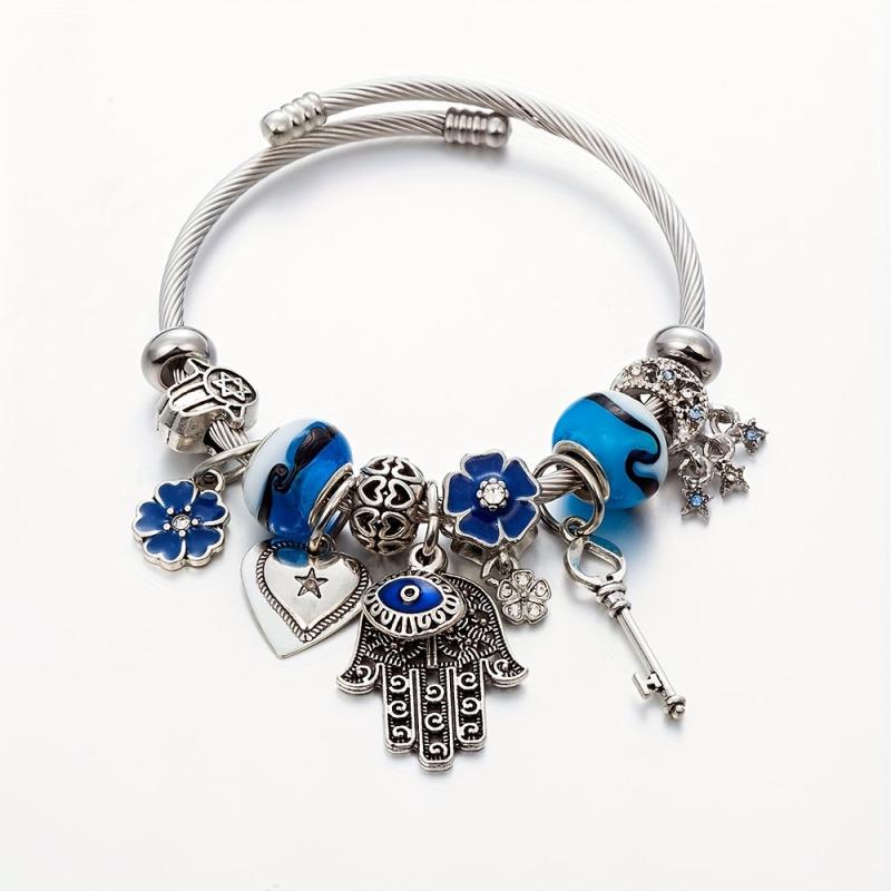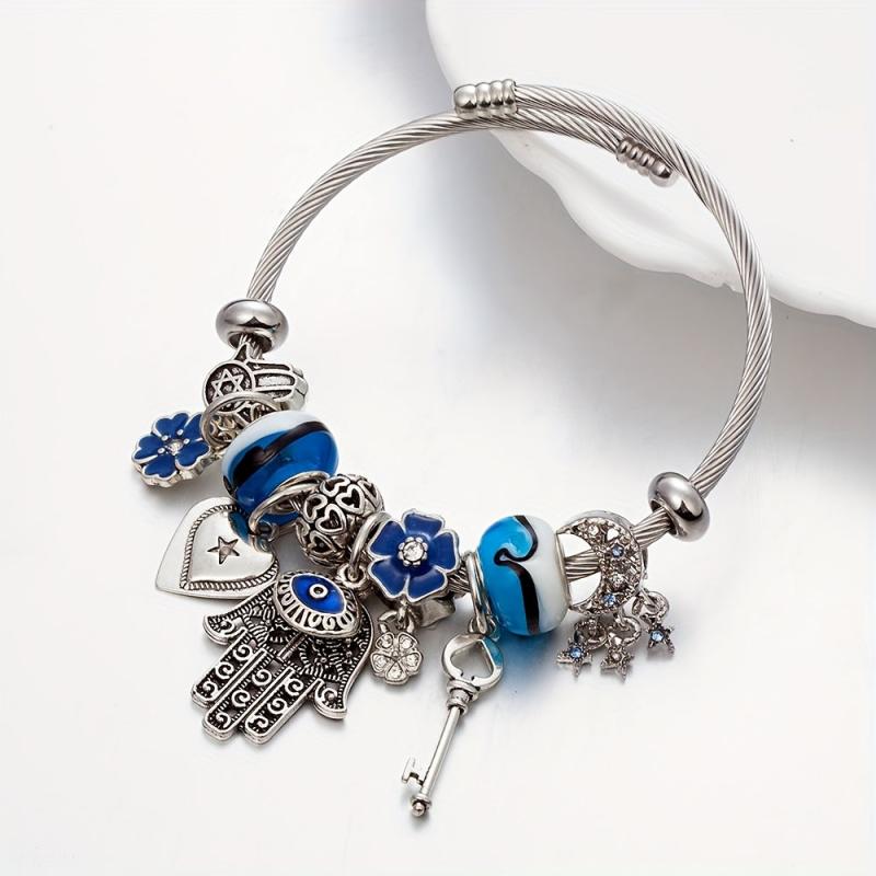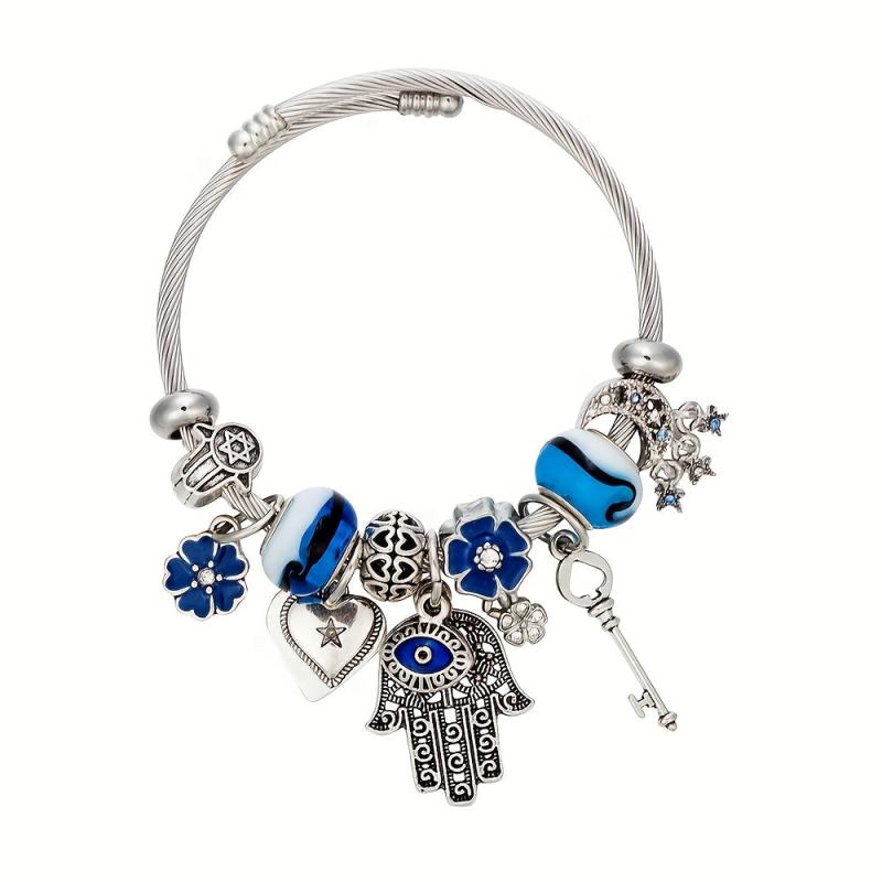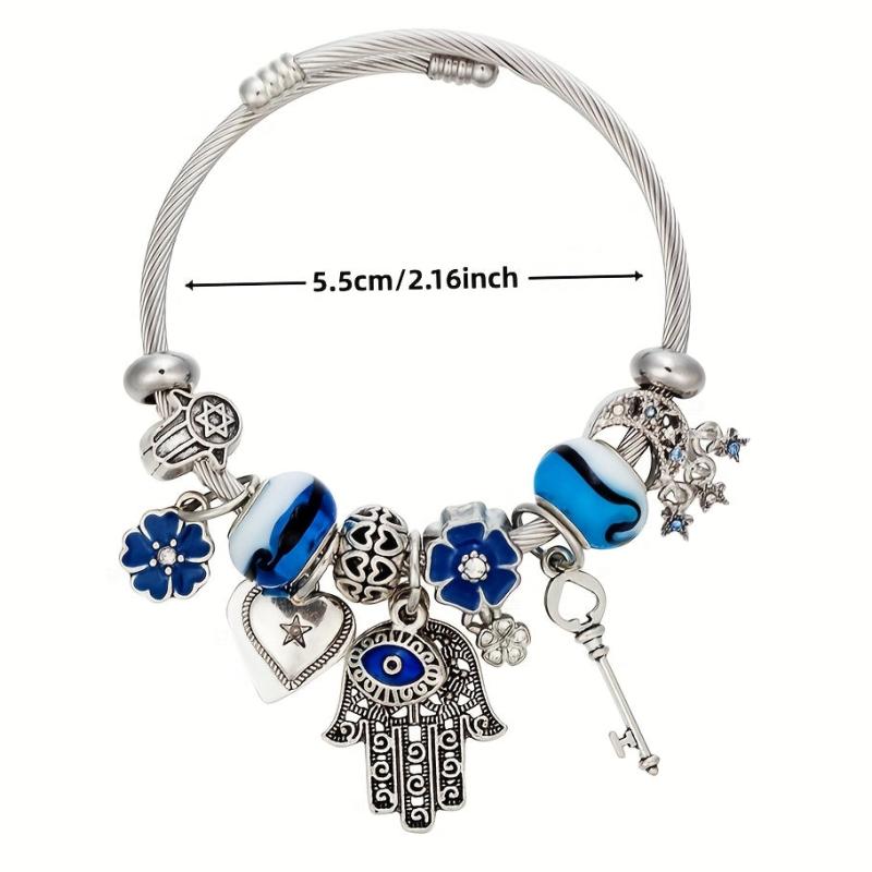 Enhance your style with this European and American stainless steel bracelet featuring a devil's eye design. Perfect for everyday wear or special occasions.