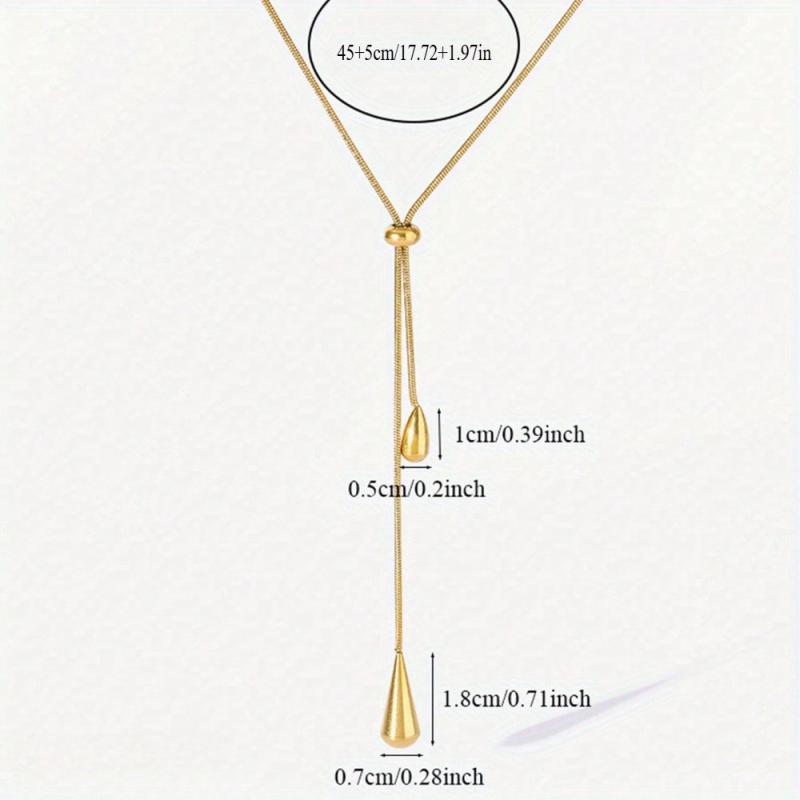 Elegant and durable, this minimalist double drop necklace features a golden tone teardrop pendant that can be worn for everyday use or special occasions.