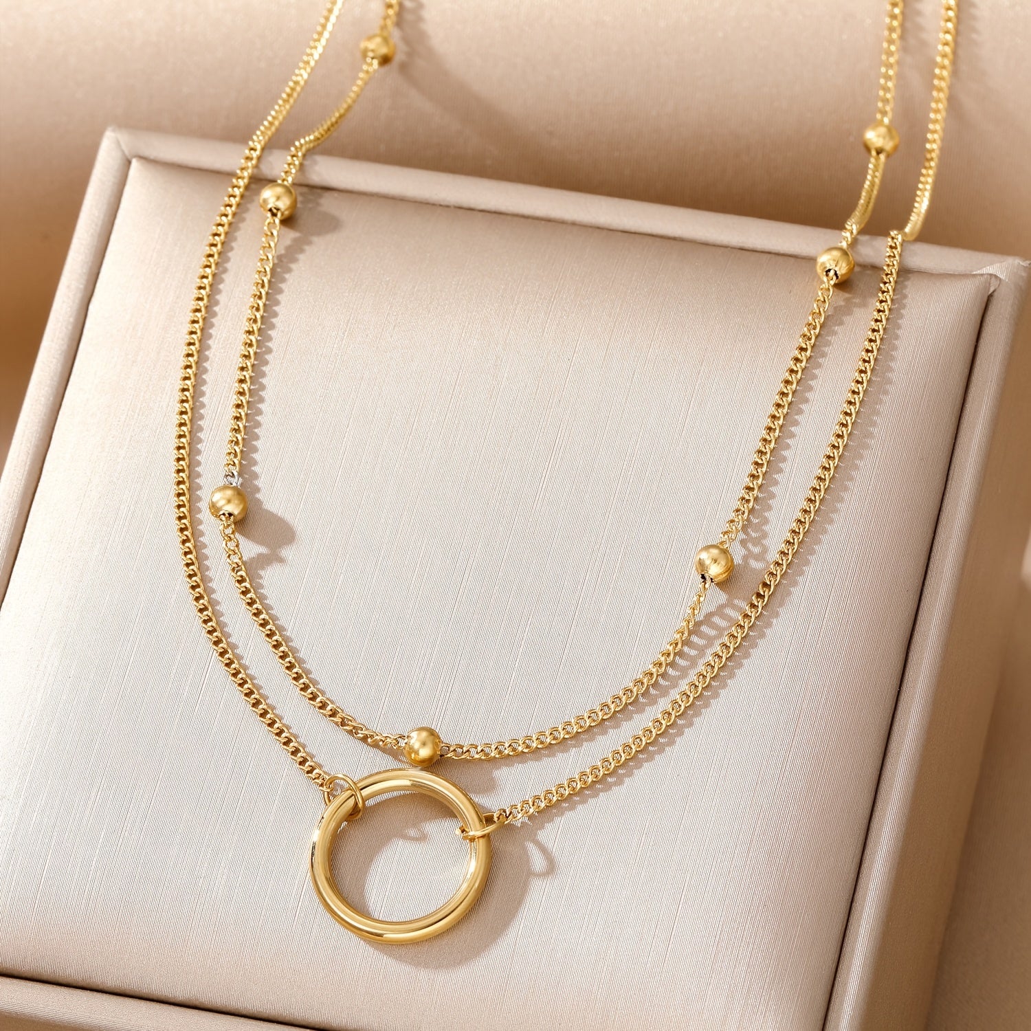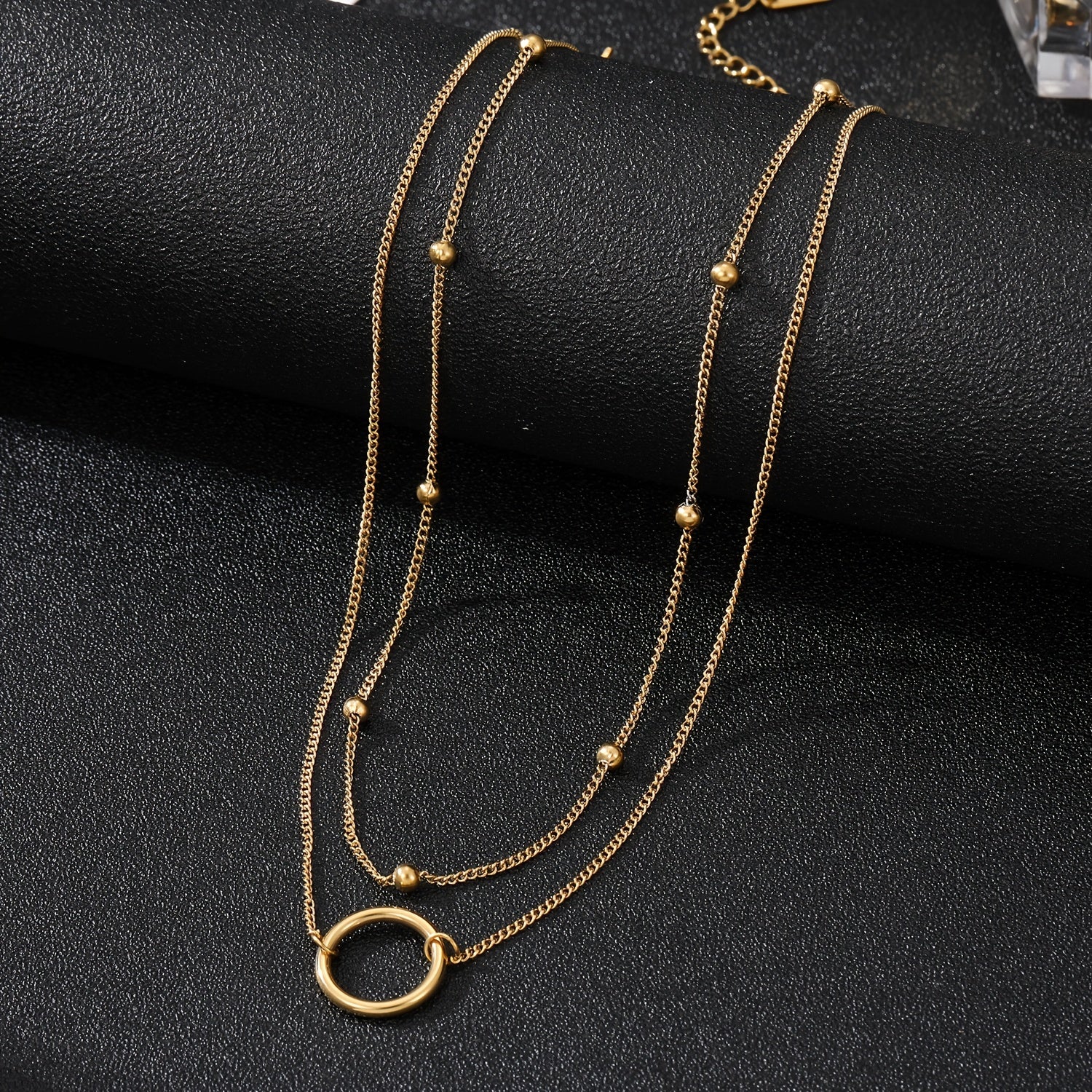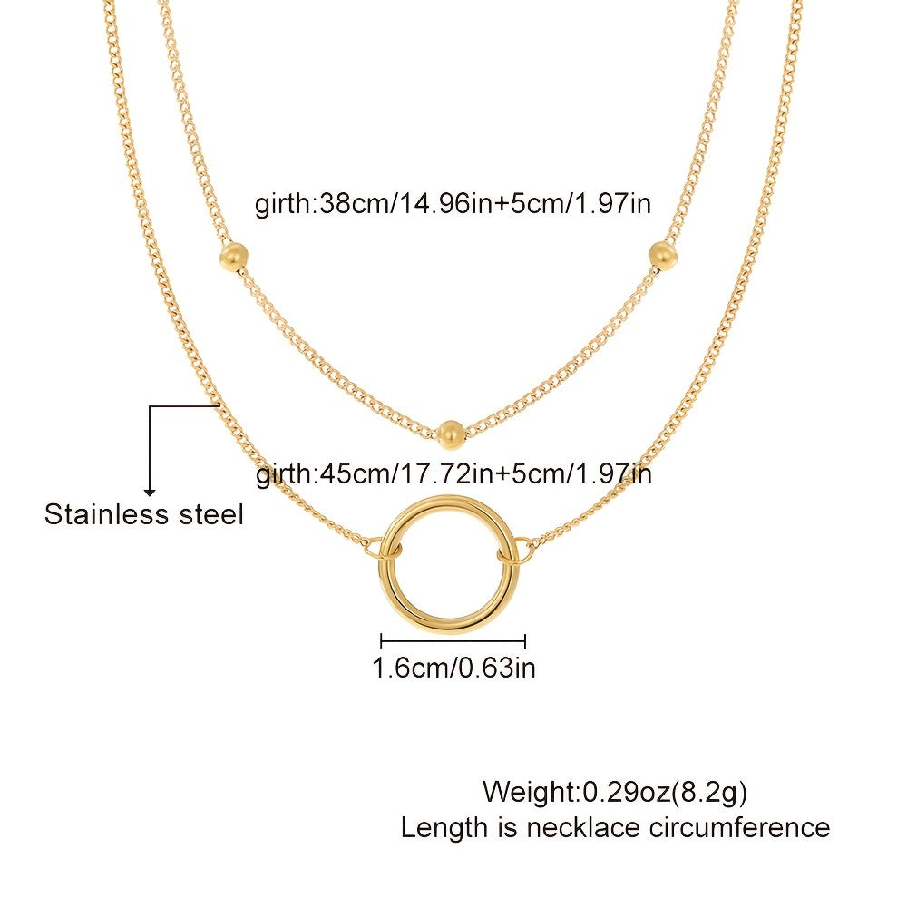 Add a touch of elegance with this stainless steel bead chain circle necklace. The double layer design is versatile and stylish, perfect for any outfit.