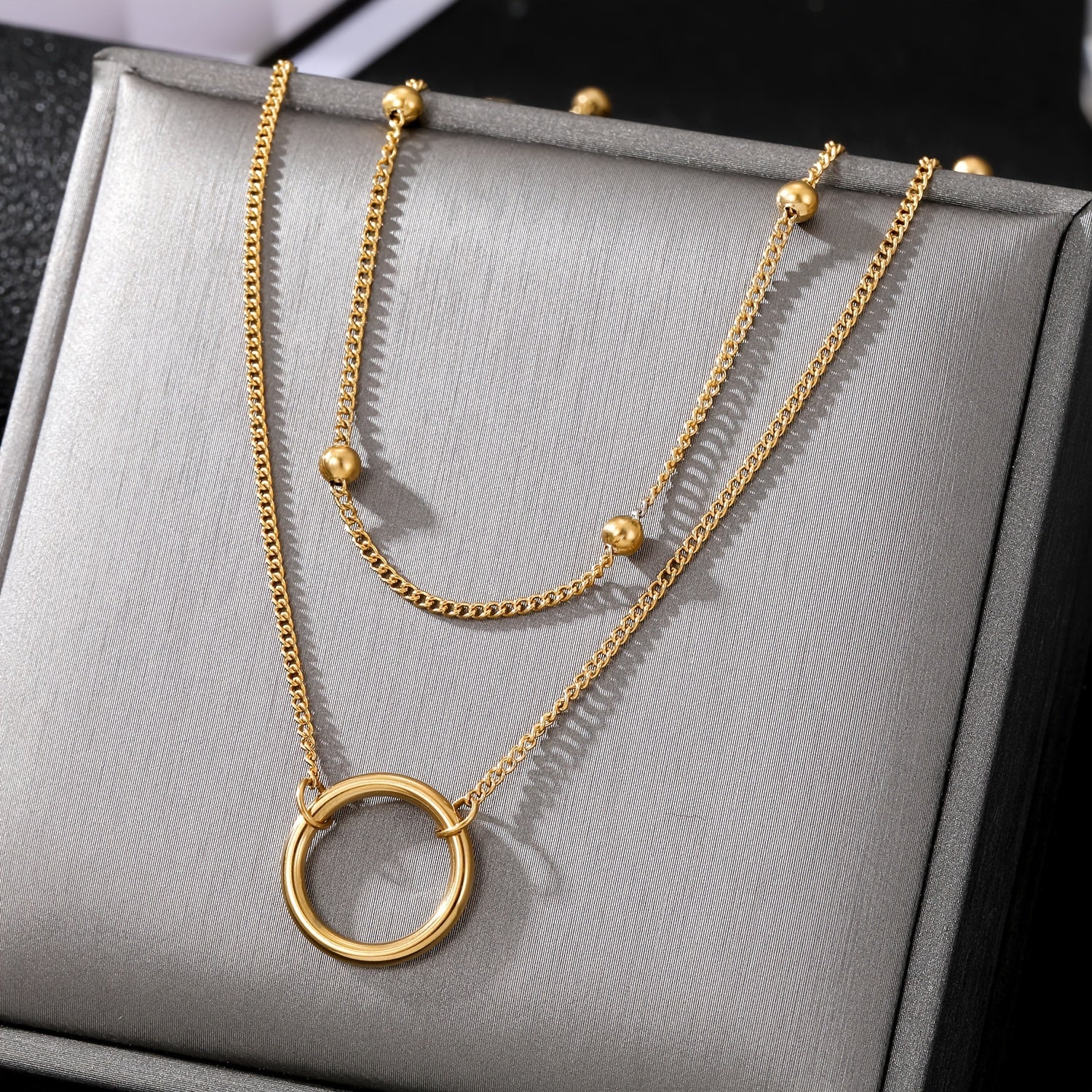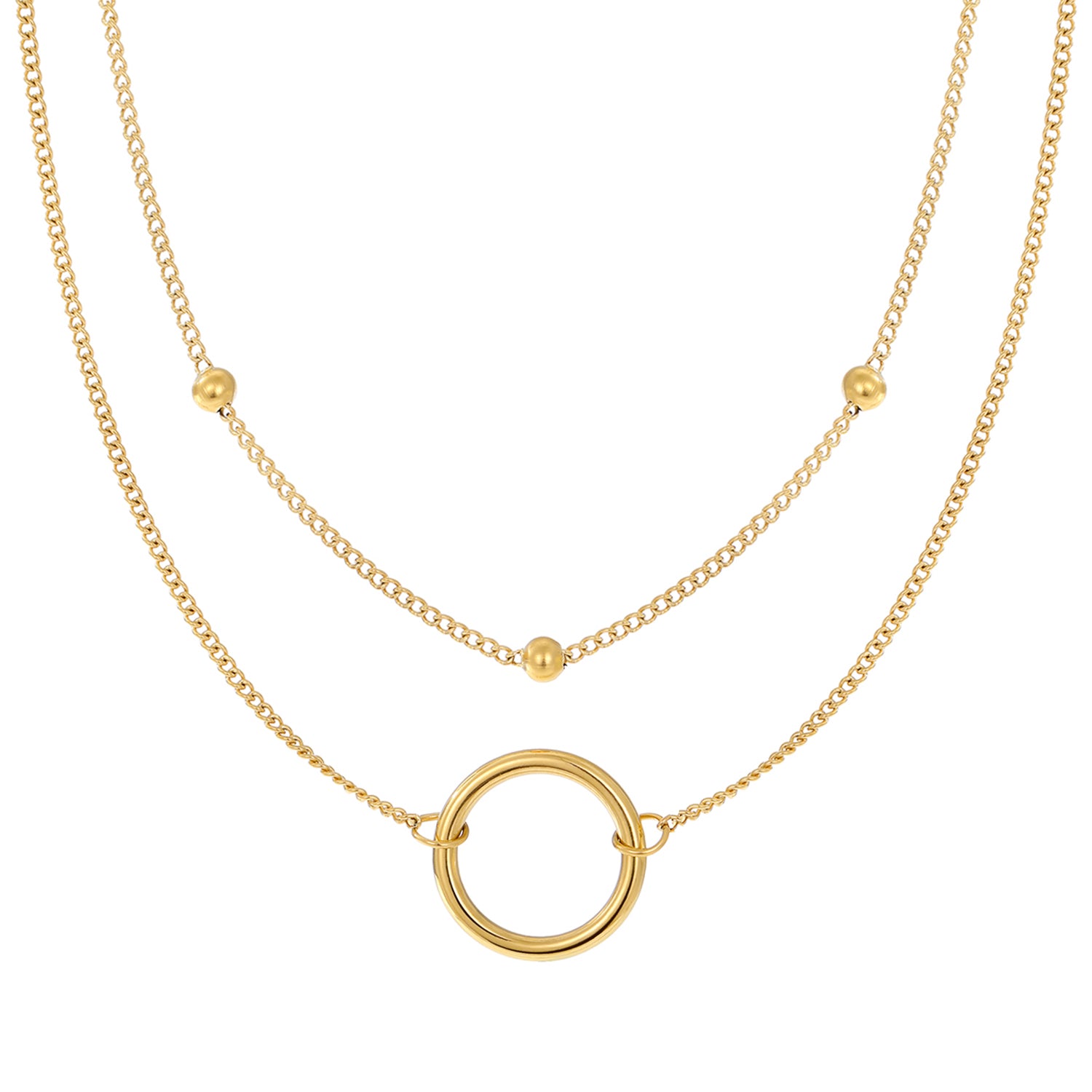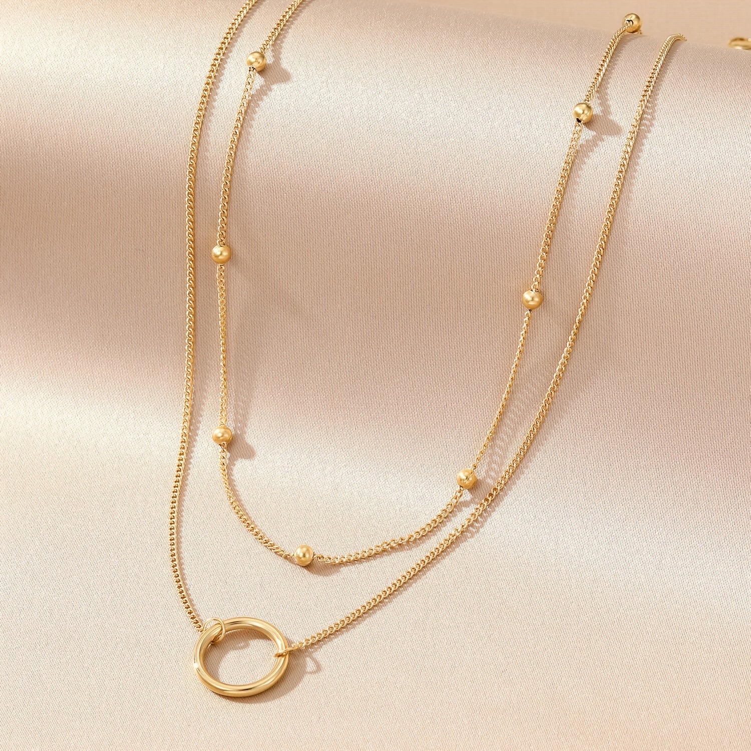 Add a touch of elegance with this stainless steel bead chain circle necklace. The double layer design is versatile and stylish, perfect for any outfit.