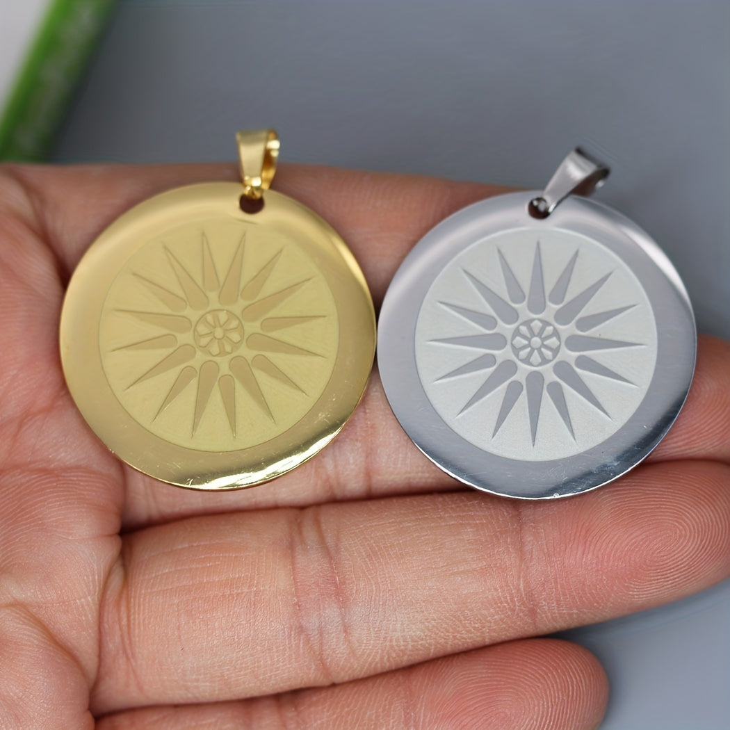 This stainless steel charm features an engraved star design, perfect for adding to necklaces, bracelets, or any jewelry crafts. Made of durable stainless steel, this charm is a great addition to your jewelry making supplies.