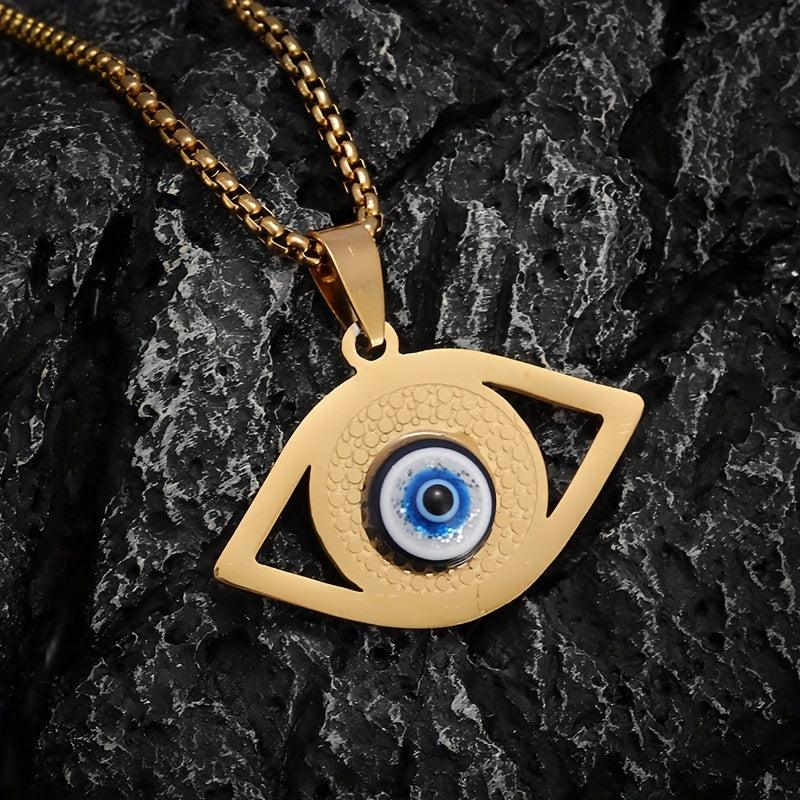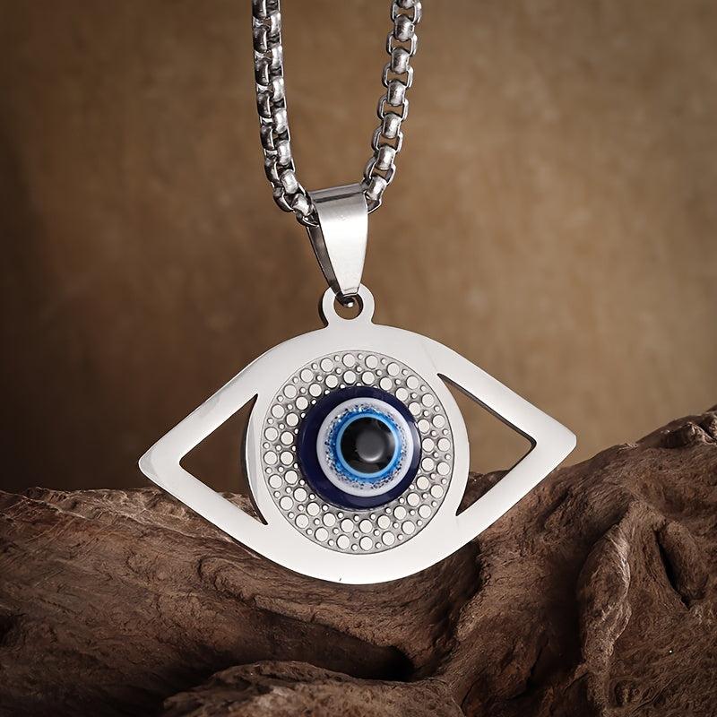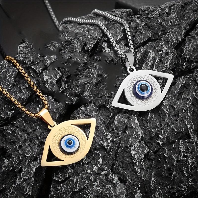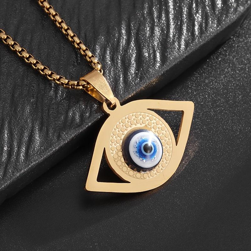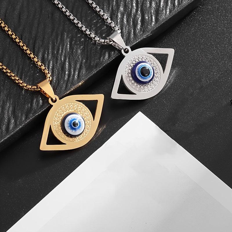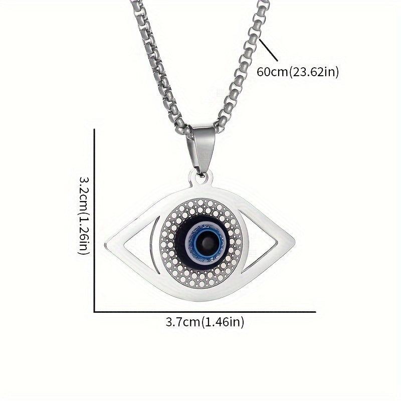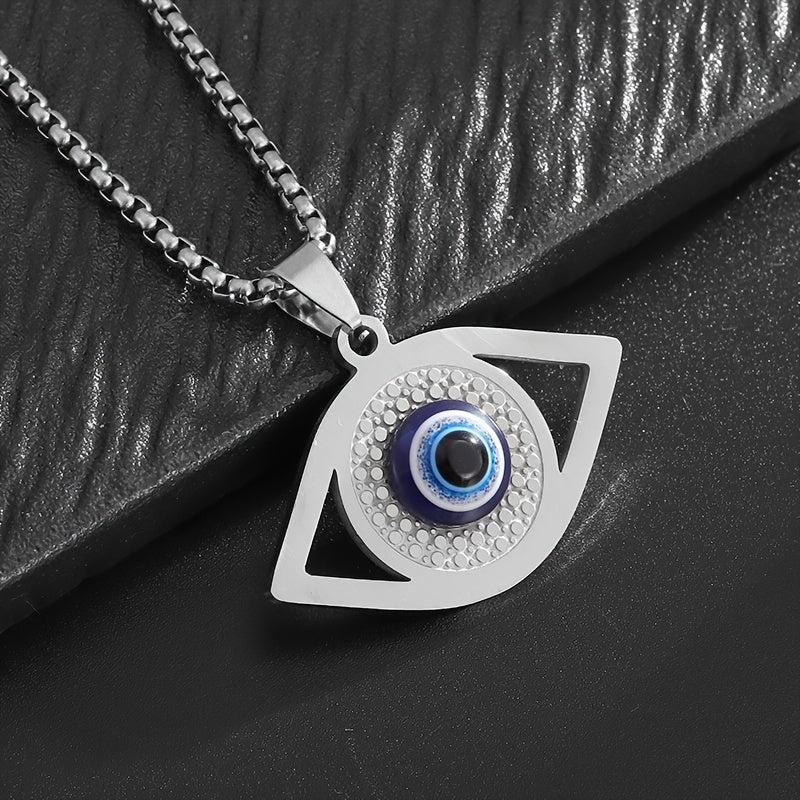 This stainless steel necklace features an enamel evil eye pendant, perfect for daily wear, banquets, and parties. A stylish charm amulet that adds a unique touch to any outfit.
