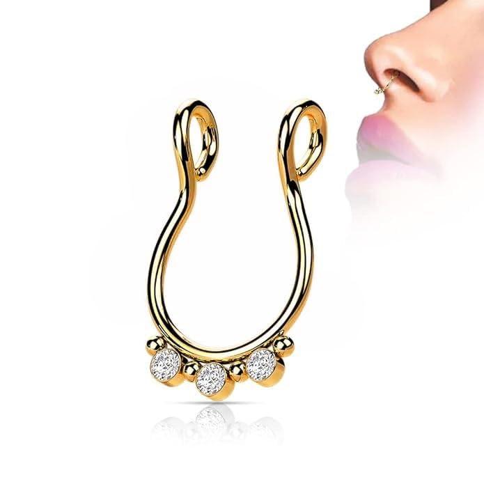 This stainless steel fake septum nose hoop ring is designed to give you the look of a real piercing without the need for actual piercing. It is made of high-quality stainless steel that is resistant to tarnishing and rusting.