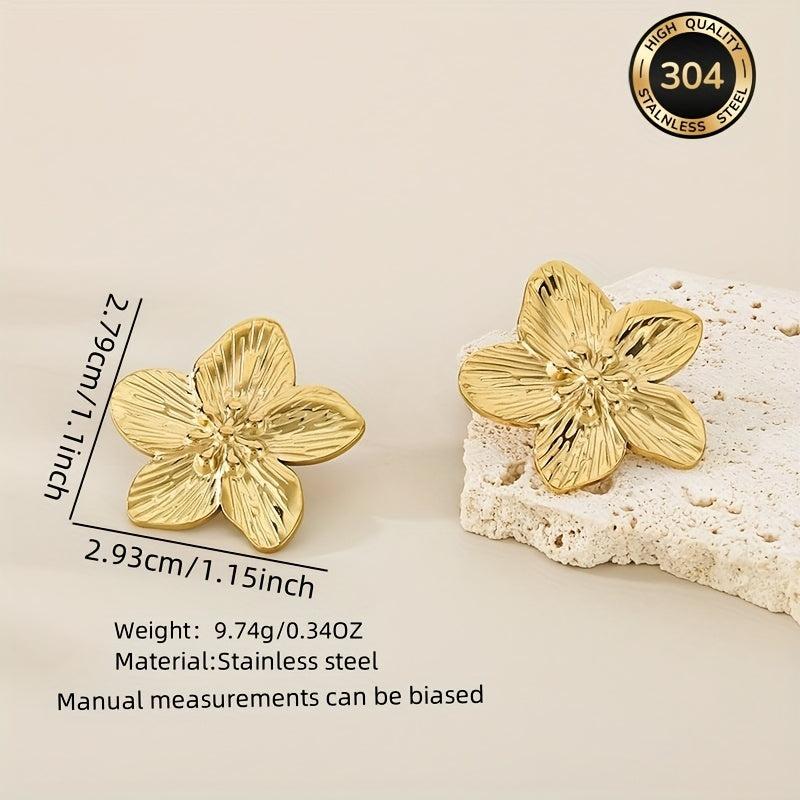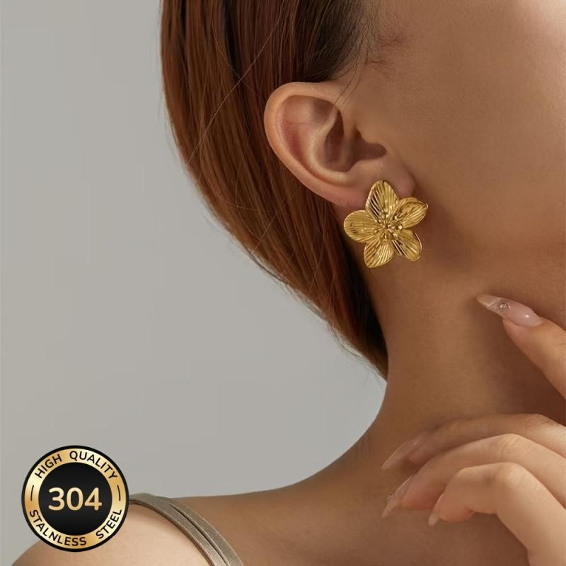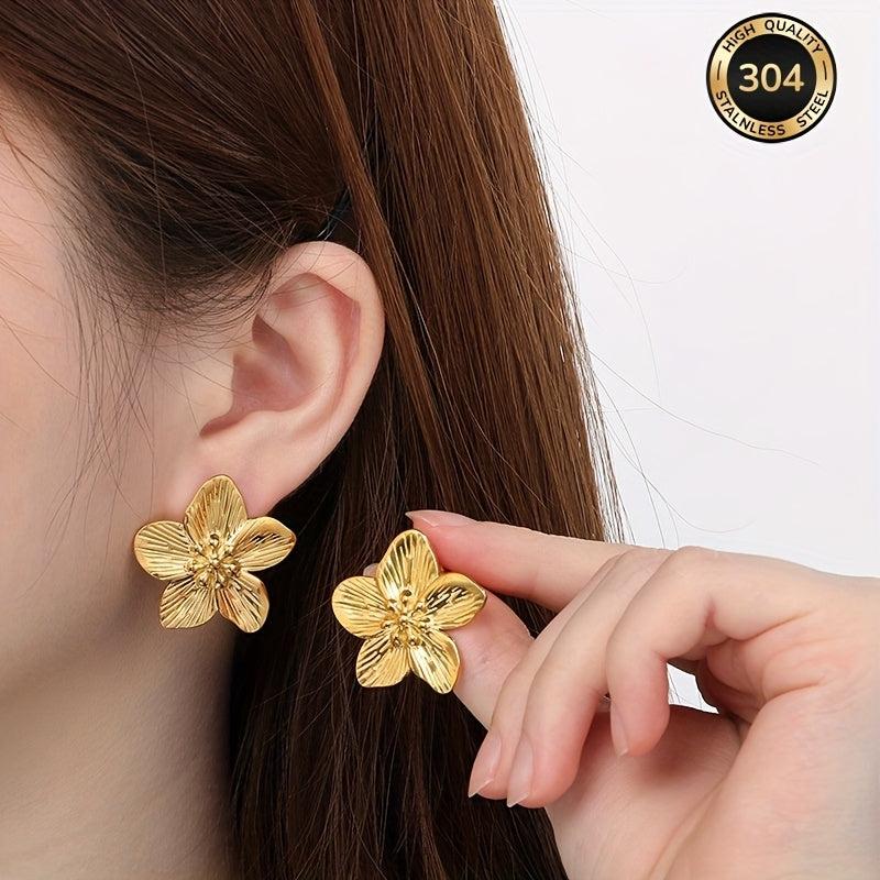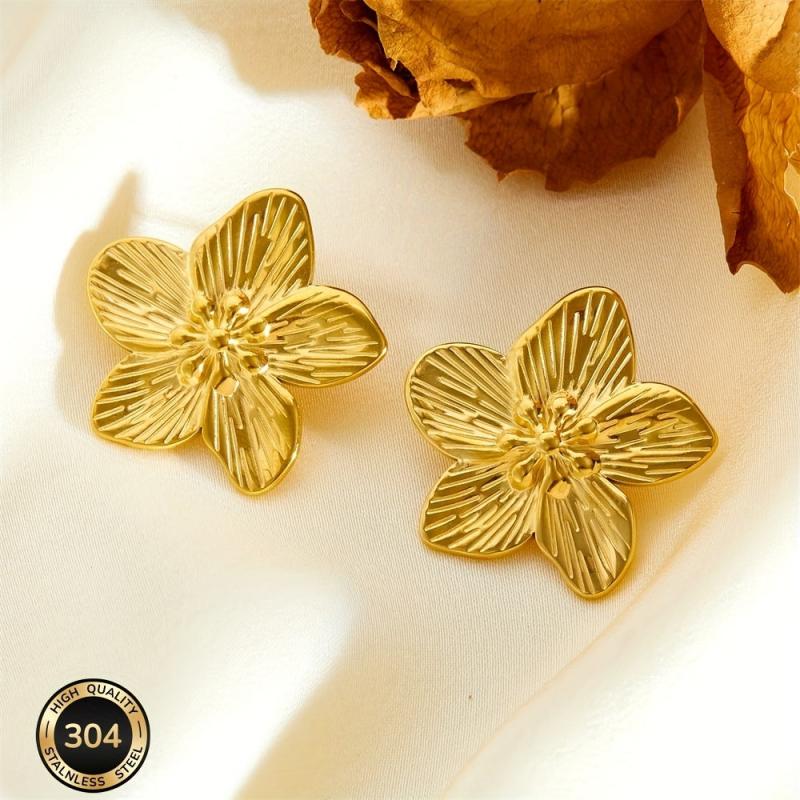 These stainless steel floral earrings feature a dramatic golden flower design that is perfect for daily wear, vacations, dates, and holiday celebrations. They are versatile and can be worn in all seasons.