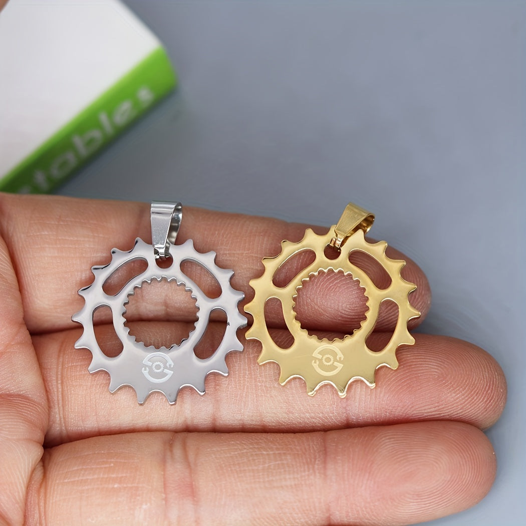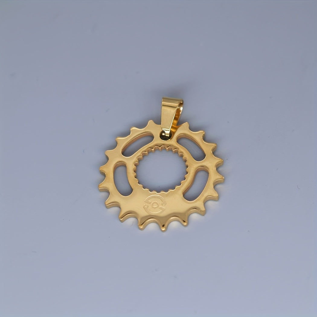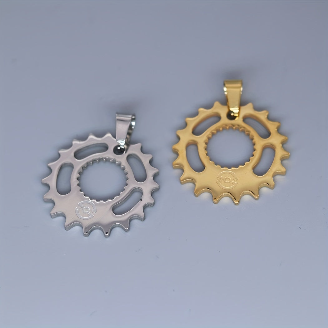 Impress your boyfriend with this unique stainless steel gear pendant necklace. Perfect for biker enthusiasts, this charm adds a rugged and stylish touch to any outfit.