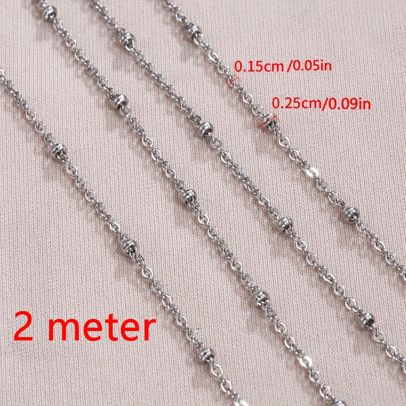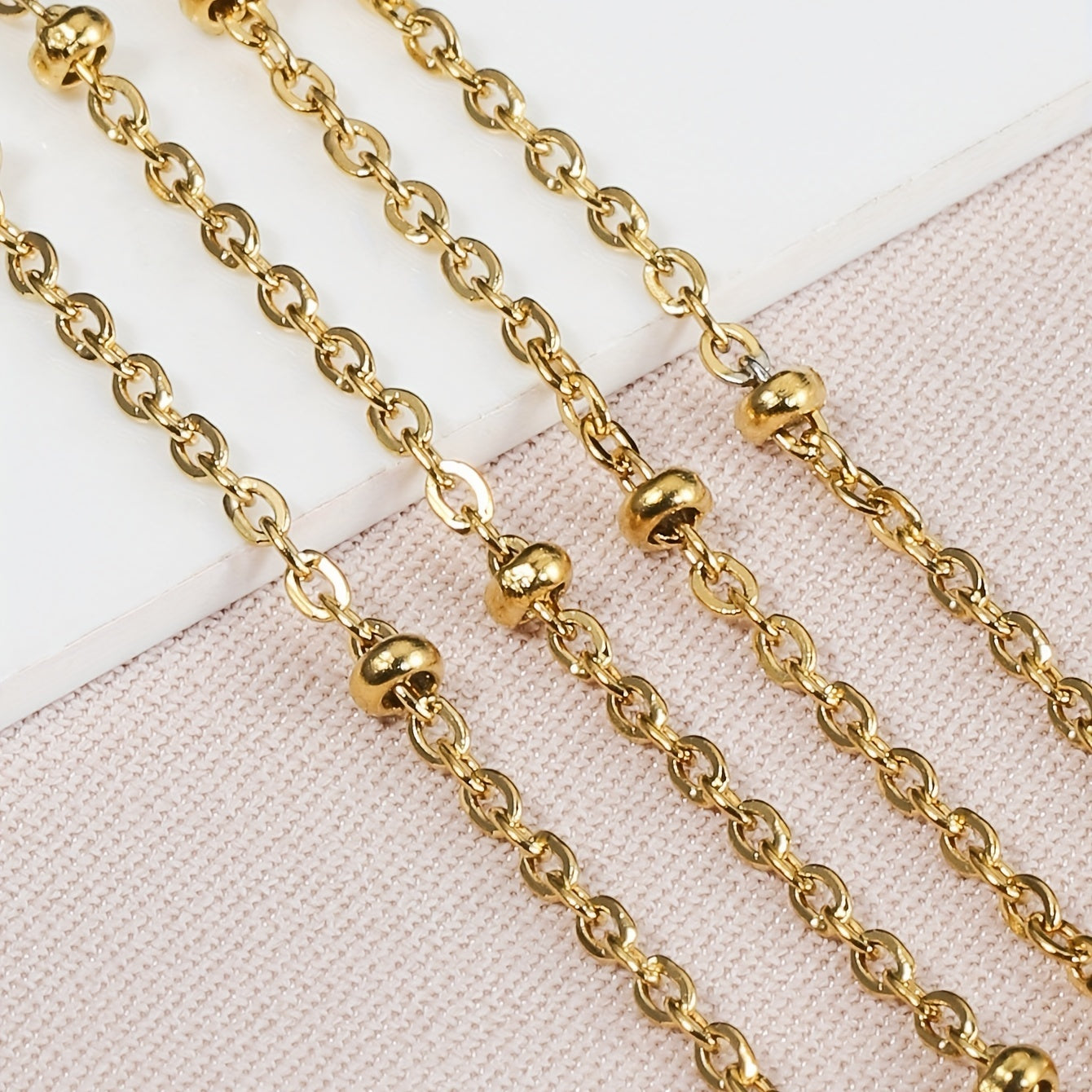 Get creative with this 2m long gold bead chain that is perfect for making anklets, necklaces, and bracelets. The flat spacer beads add a unique touch to your jewelry designs.