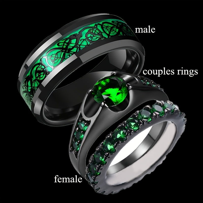 This gorgeous stainless steel ring features a green patch dragon pattern with zircon accents, making it perfect for engagements, weddings, promises, and daily wear. Available for both men and women.