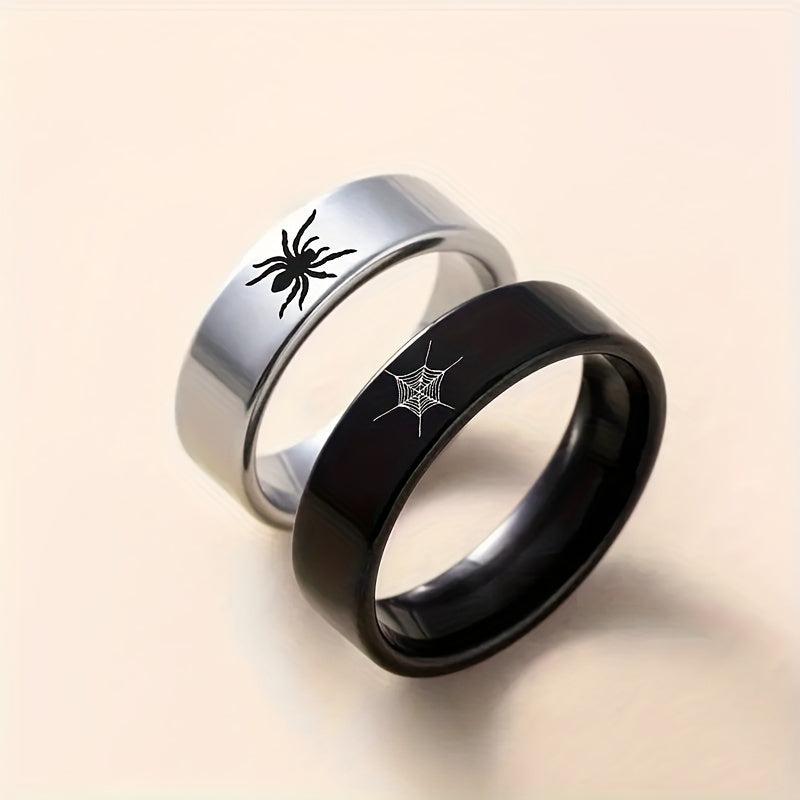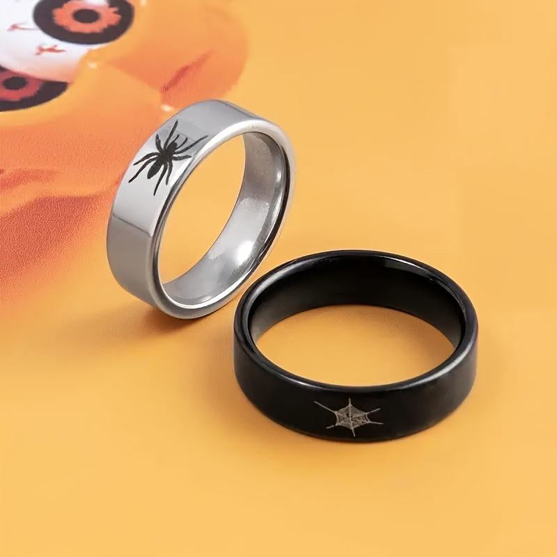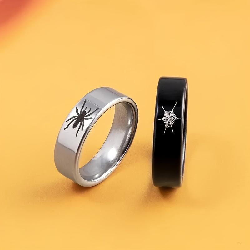 This fashionable stainless steel ring set is perfect for Halloween. The glossy design features a punk hip hop spider web set that adds a touch of edginess to any outfit.