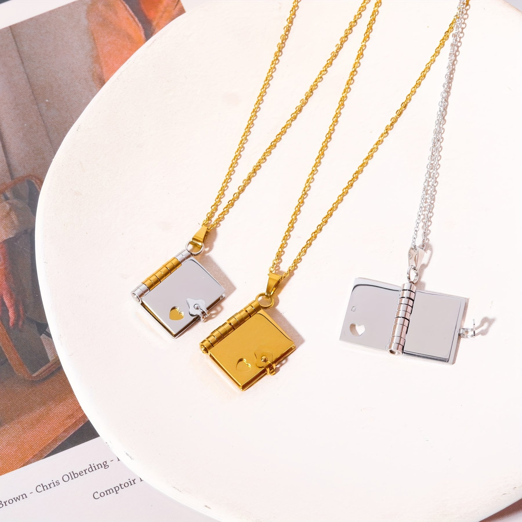 This stainless steel pendant necklace features a love heart and book design, perfect for adding a touch of charm to casual attire or as a thoughtful gift on birthdays and special occasions.