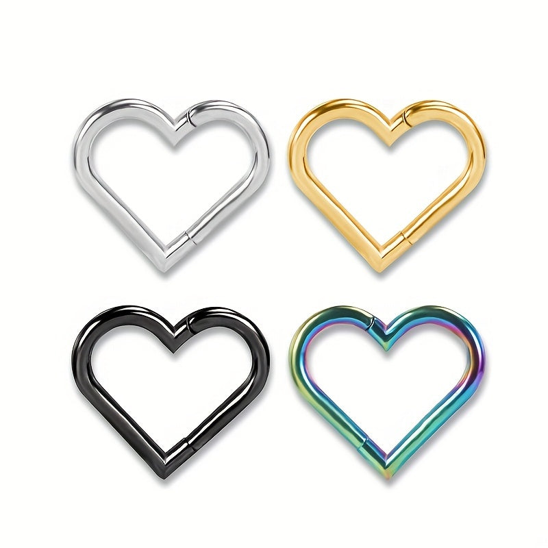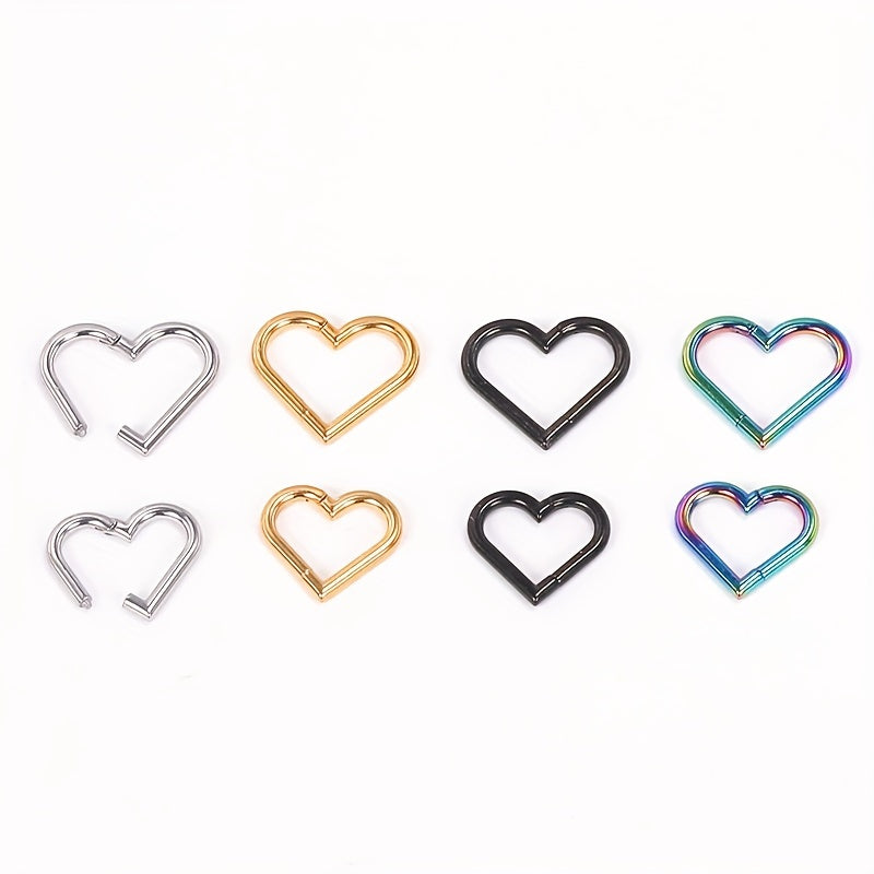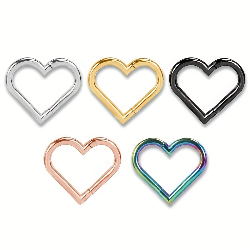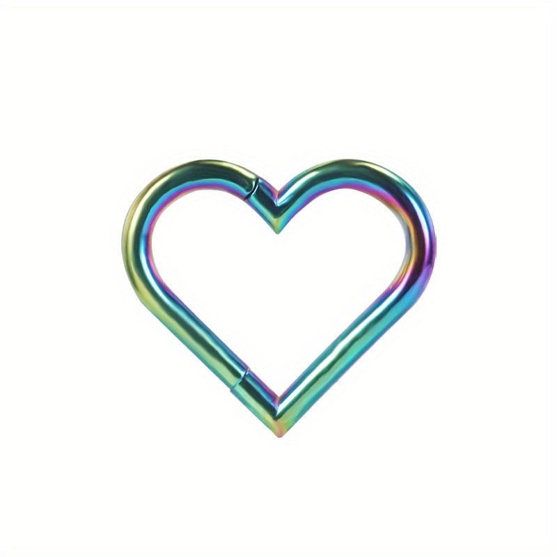 This European and American stainless steel nose ring features a unique heart design and durable 316L electroplating. It is a stylish and universal piece of piercing jewelry suitable for various occasions.