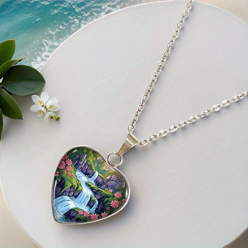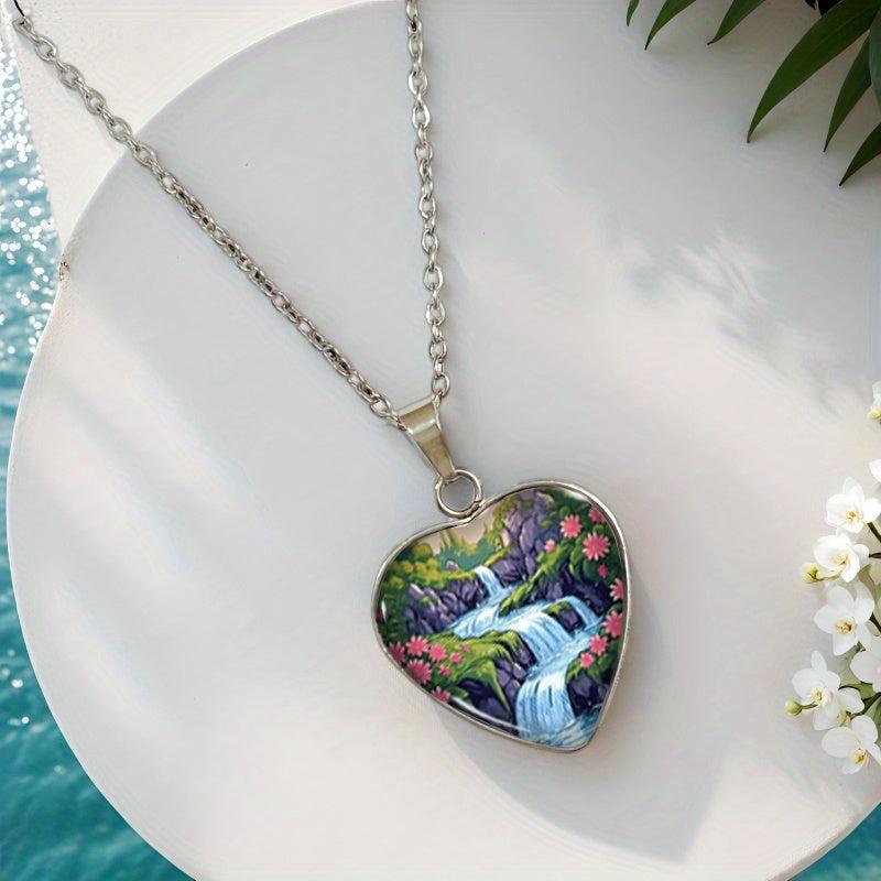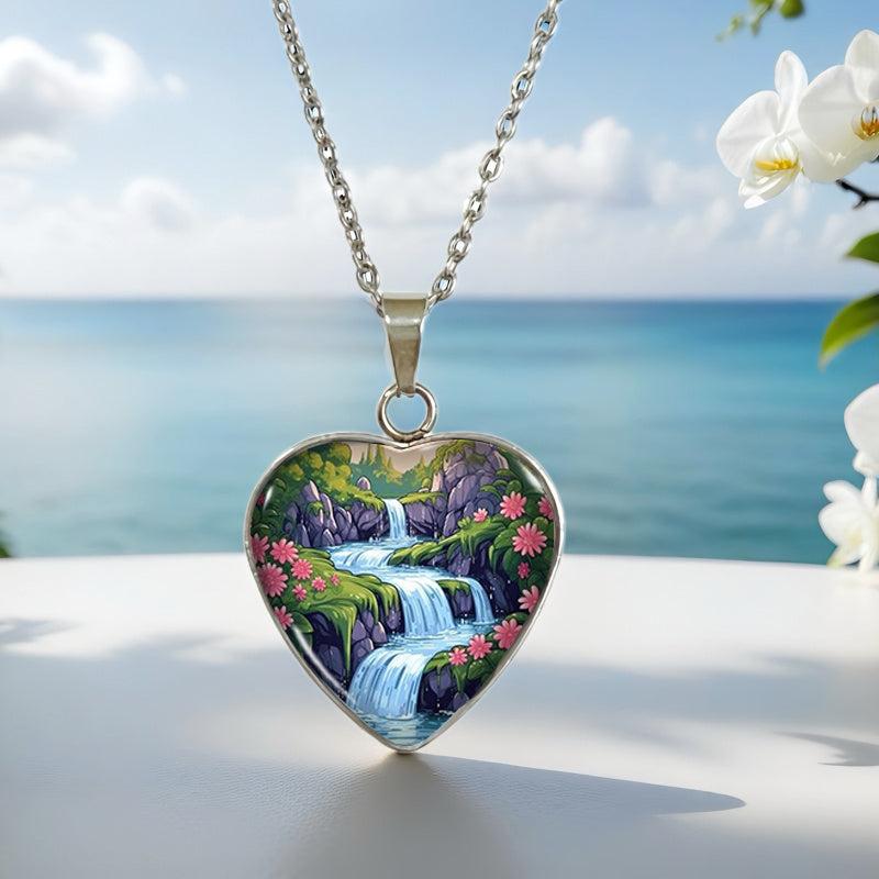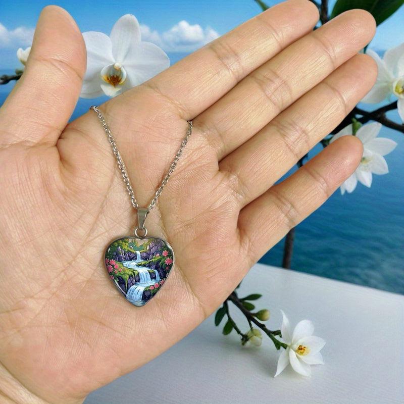 Elevate your style with this men's 304 stainless steel pendant featuring a heart-shaped waterfall and floral forest design. Perfect for daily wear and parties.