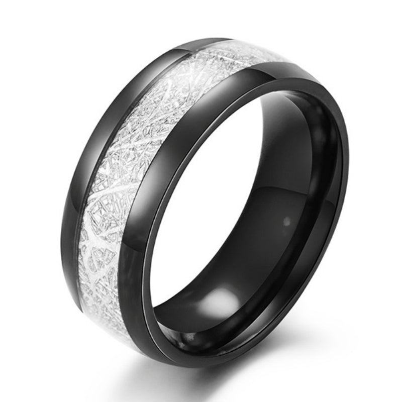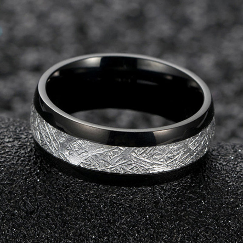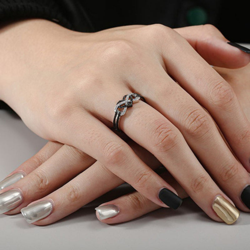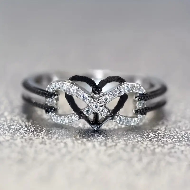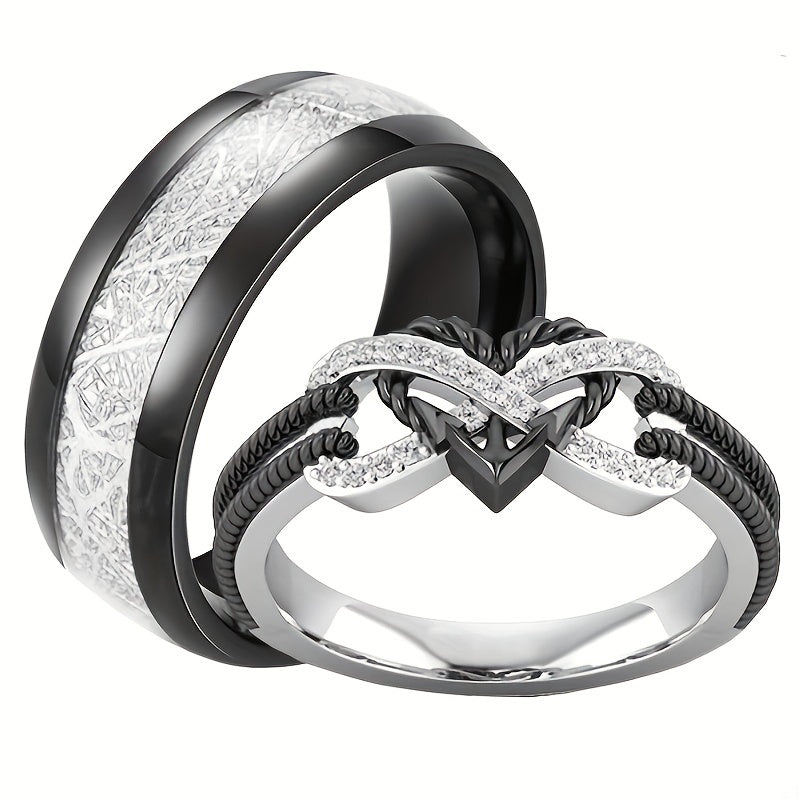 This stainless steel couple ring features a heart-shaped design with zircon stones. Perfect for weddings or as a romantic gift.