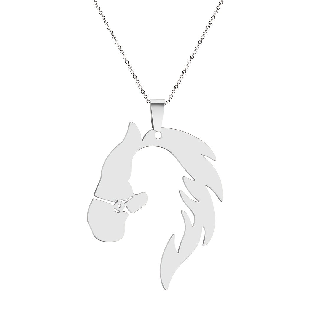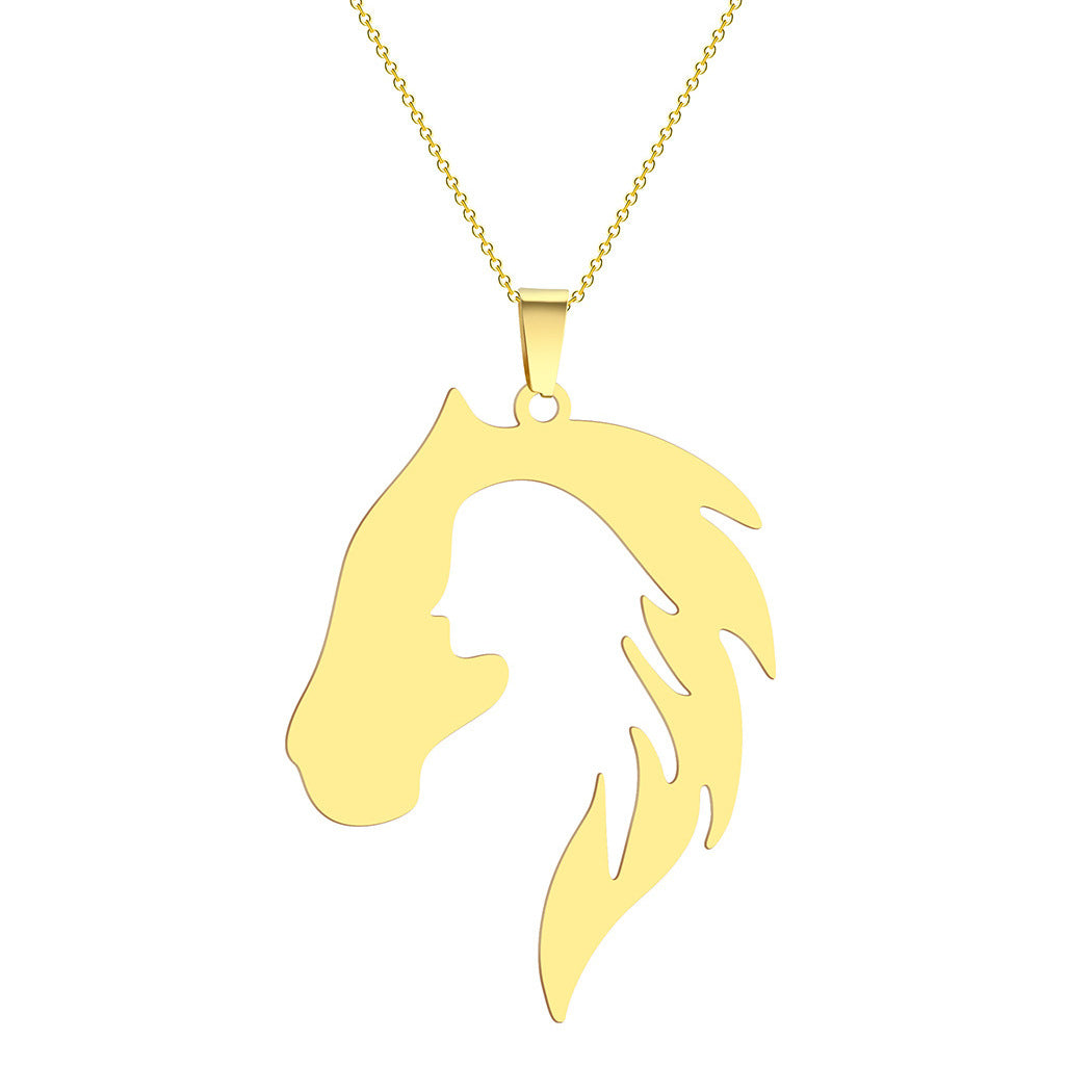 This stylish pendant necklace features a hollow out design of a girl and a horse, perfect for men's fashion.