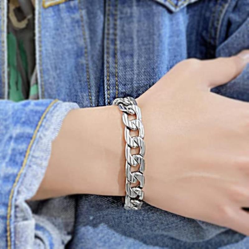 Enhance your everyday look with this stylish stainless steel link bracelet. It adds a touch of elegance to any outfit, whether casual or formal.