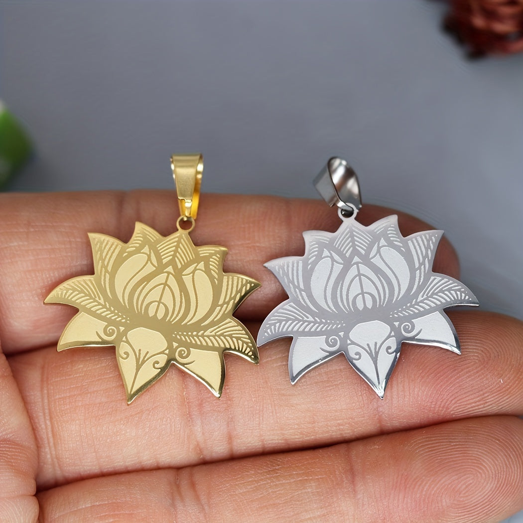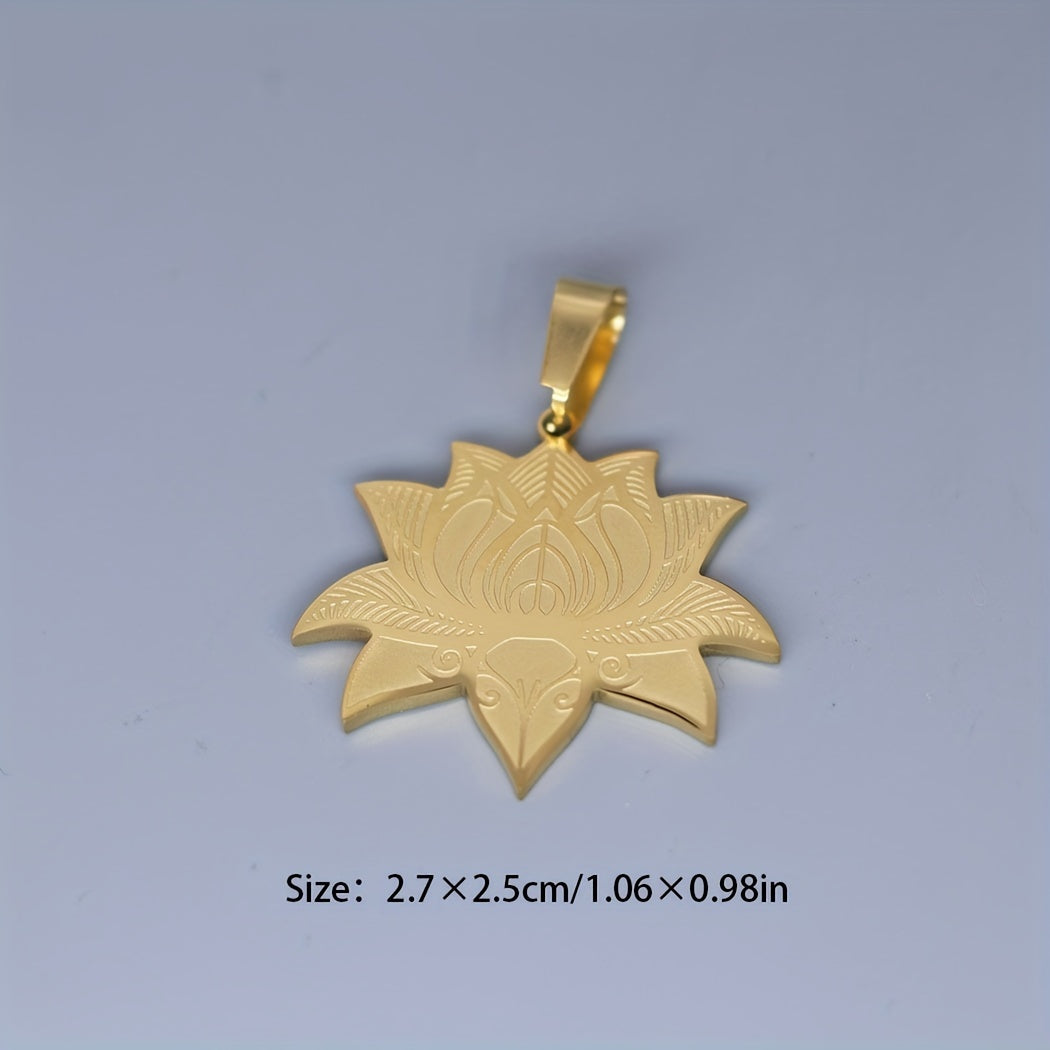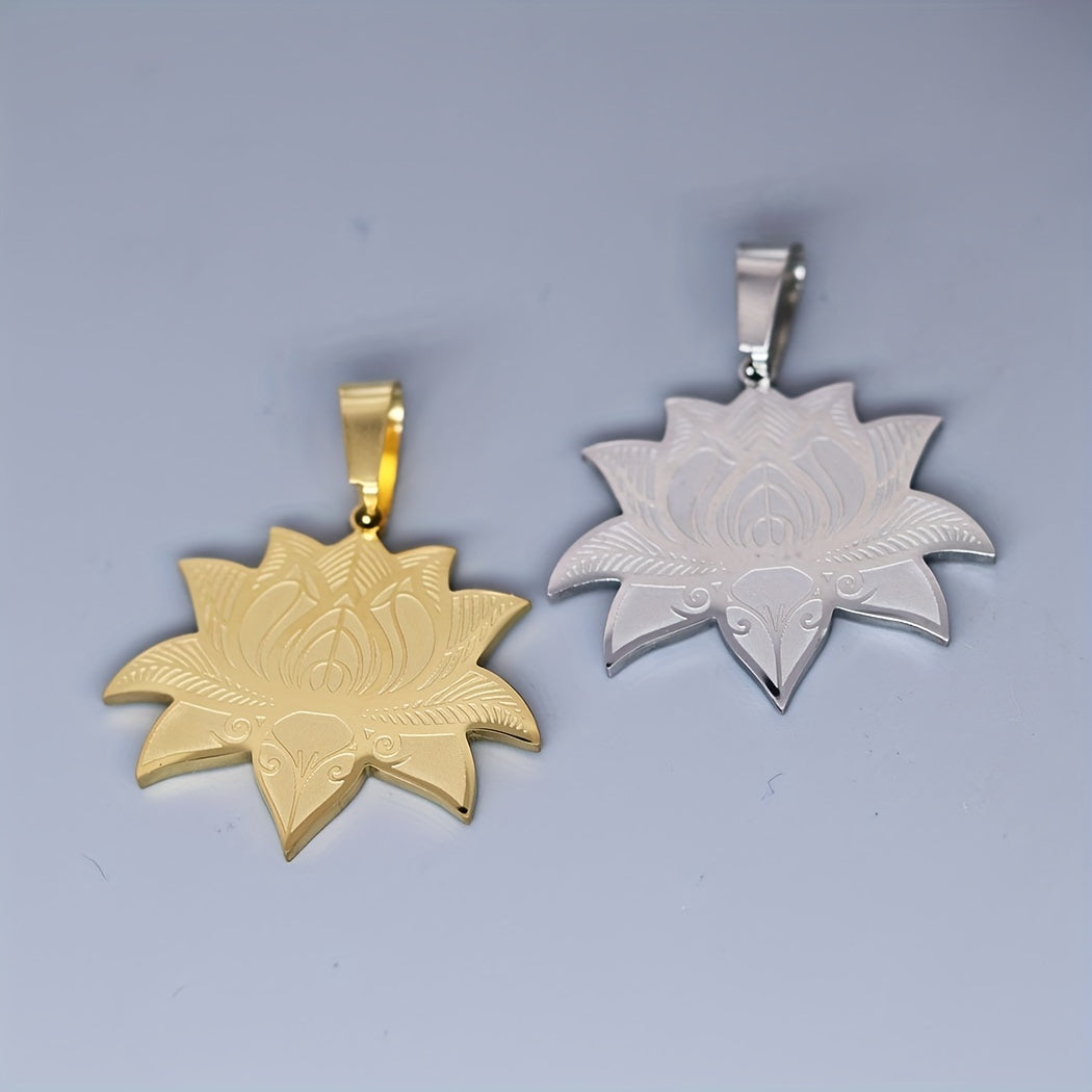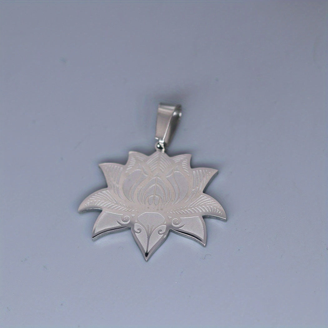 Beautifully crafted stainless steel pendant necklace featuring a lotus flower design, perfect for men. This charm jewelry makes for an ideal Christmas gift.
