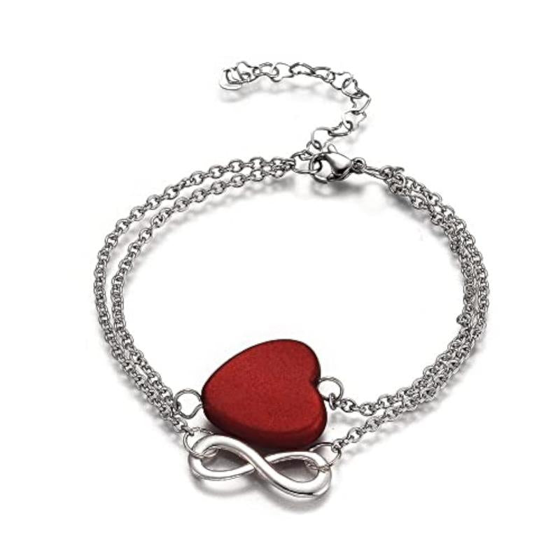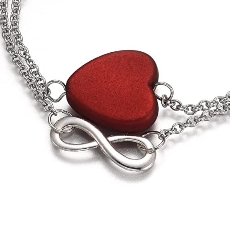 Discover the beauty of this stainless steel bracelet featuring a love heart and infinity symbol design. Perfect for couples or as a meaningful gift!