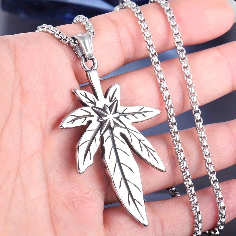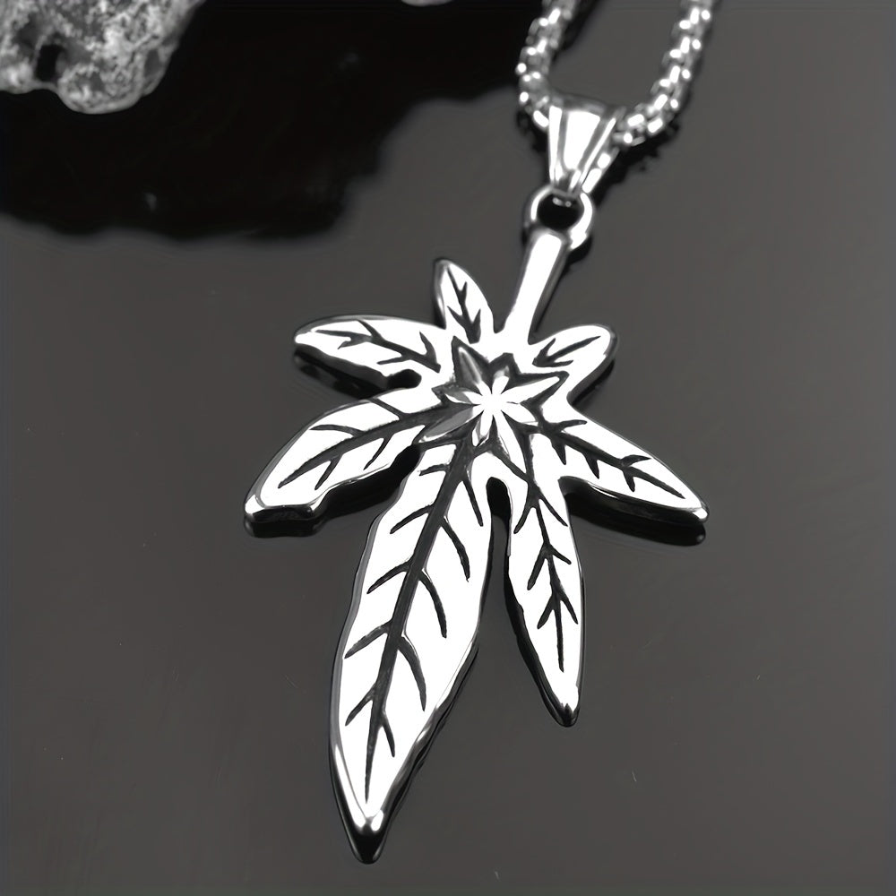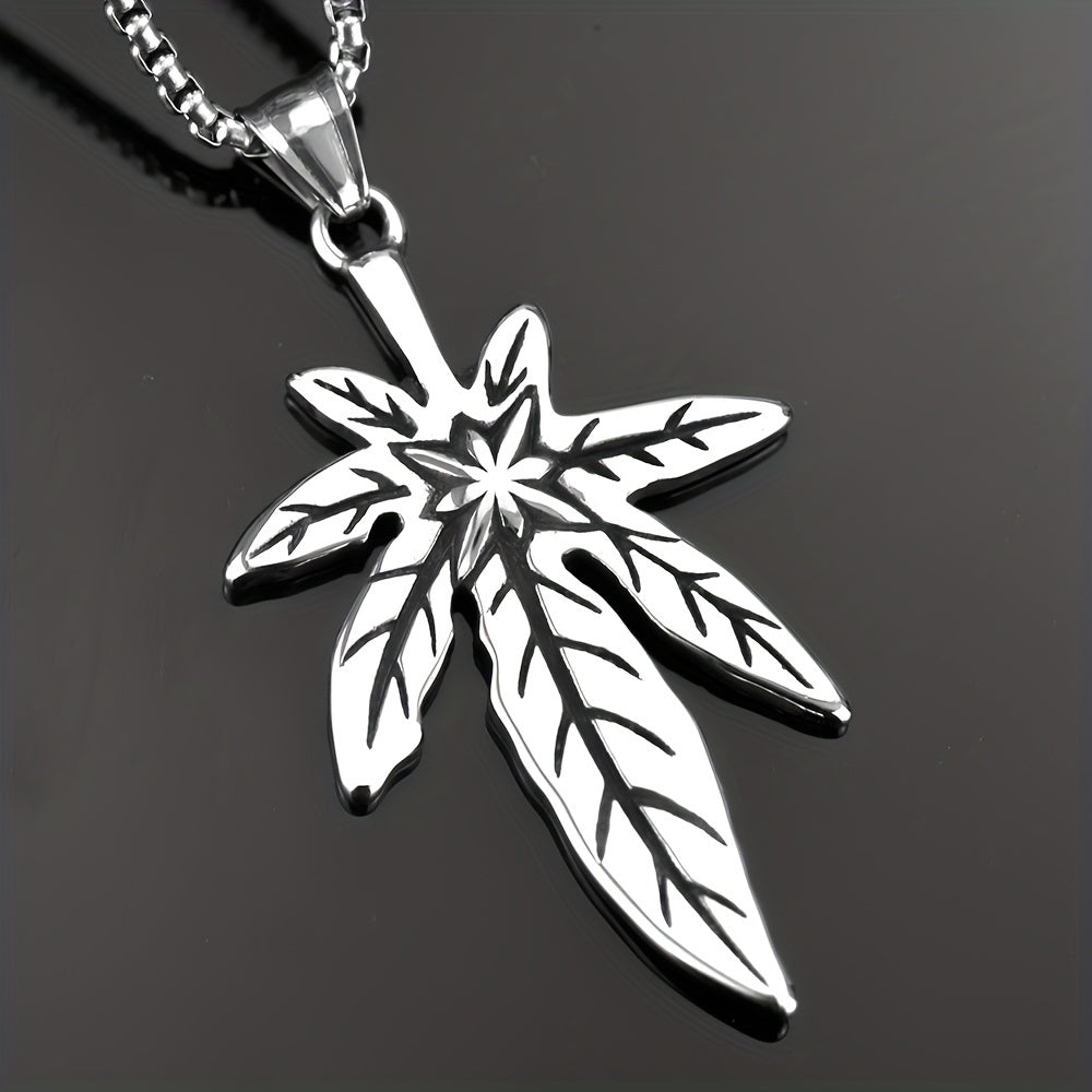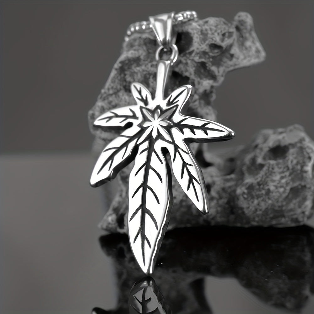 Elevate your style with this stainless steel pendant necklace featuring a maple leaf design. Perfect for adding a touch of retro hip hop flair to your party or nightclub look.