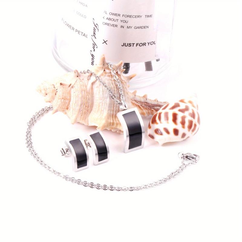 This 3-piece jewelry set is a great accessory for daily wear. It can also be a perfect gift for friends or for holiday gifting. The set is made of creative stainless steel.