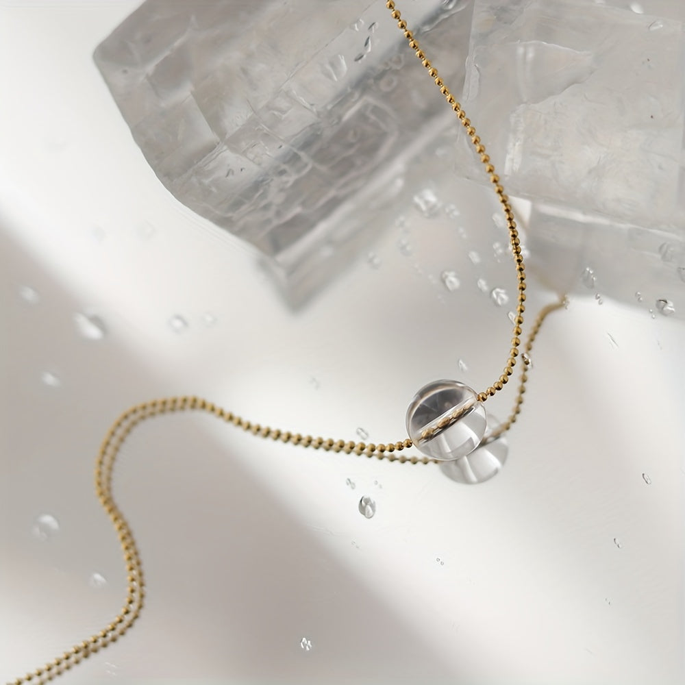 This necklace features a clear round glass pendant on a stylish stainless steel chain. Perfect for daily wear or as a gift for any occasion throughout the year.