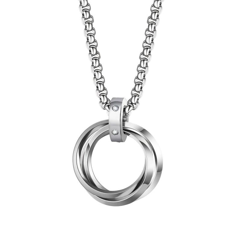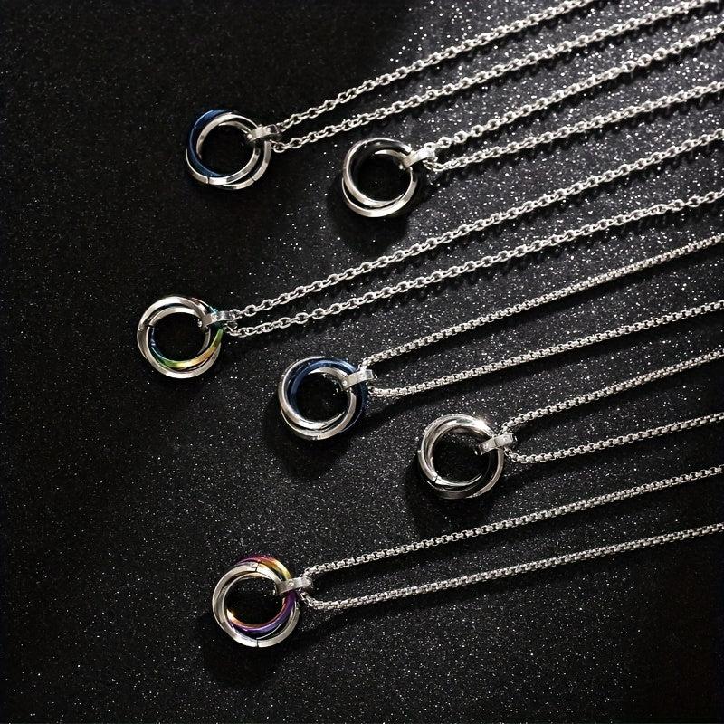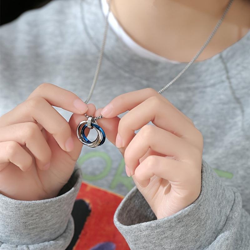 Show your love and connection with this necklace featuring three rings, a perfect gift for family members.