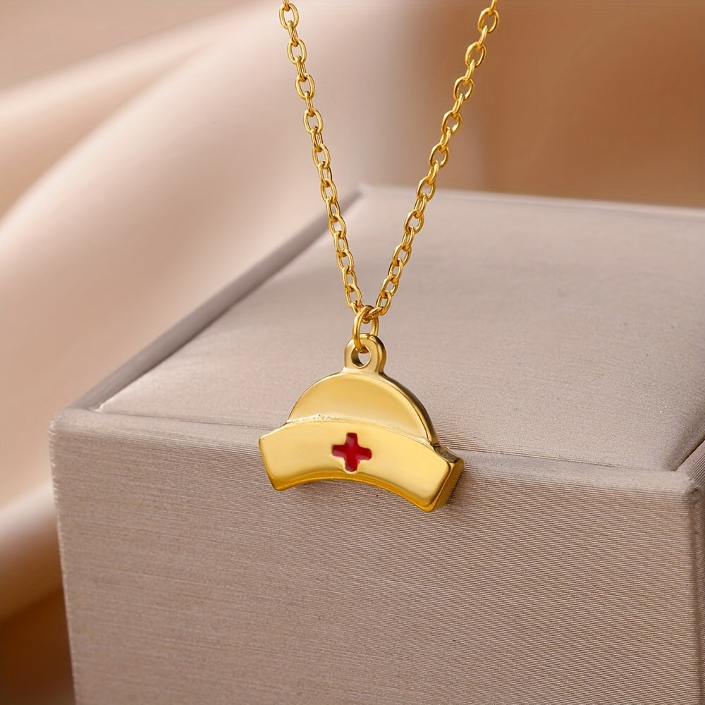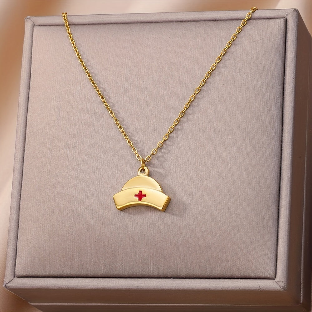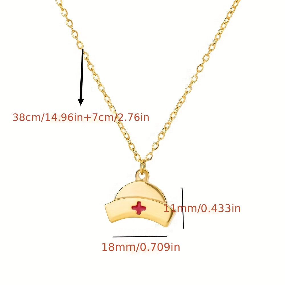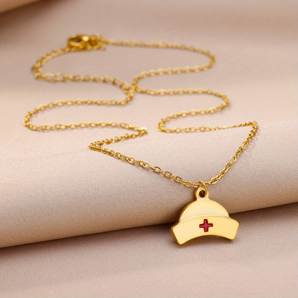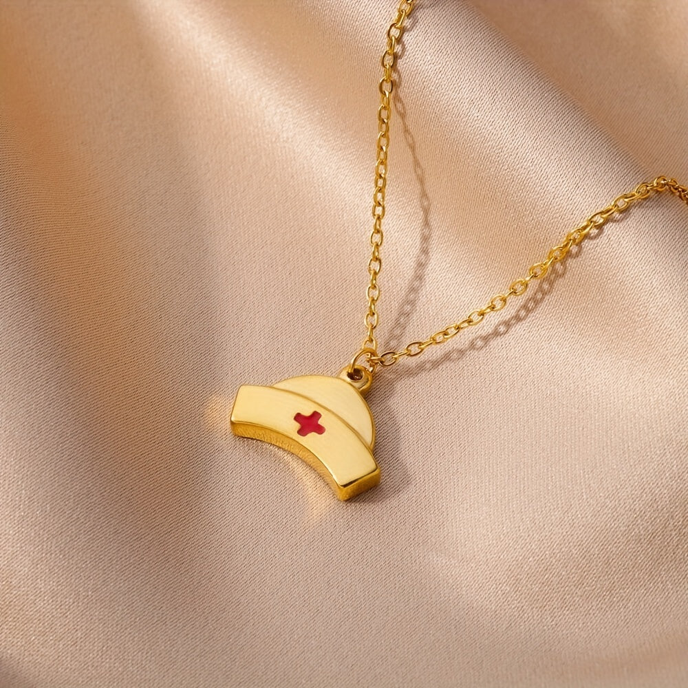 This stylish necklace features a niche nurse cap pendant, perfect for both men and women. Made of durable stainless steel with a plated finish.