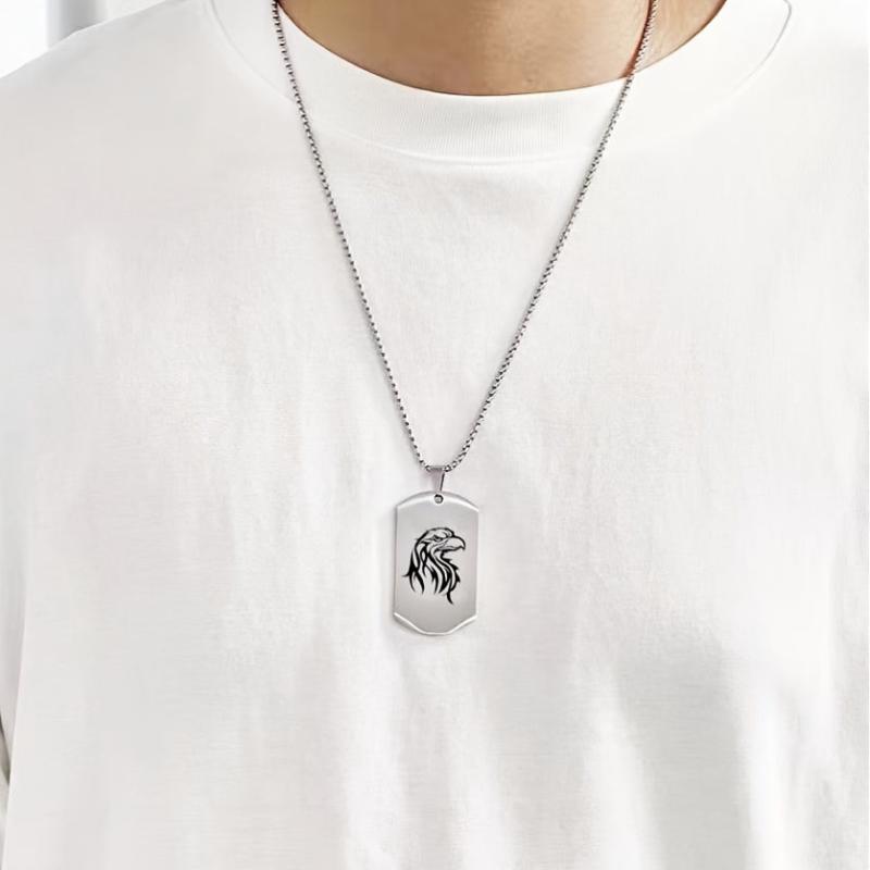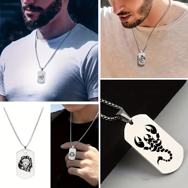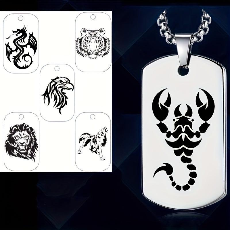 This pendant necklace features laser engraved wolf, tiger, lion, dragon, eagle, and scorpion charms. Made of stainless steel, it is durable and tarnish resistant, making it an ideal everyday accessory.