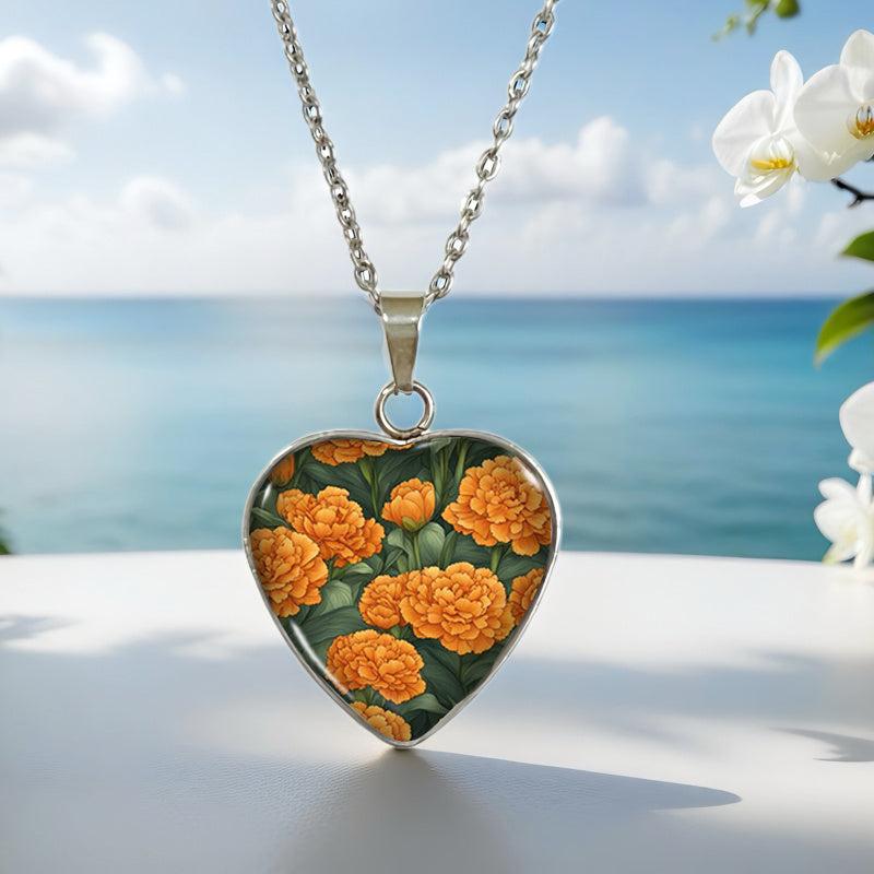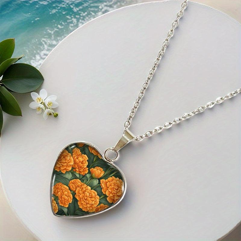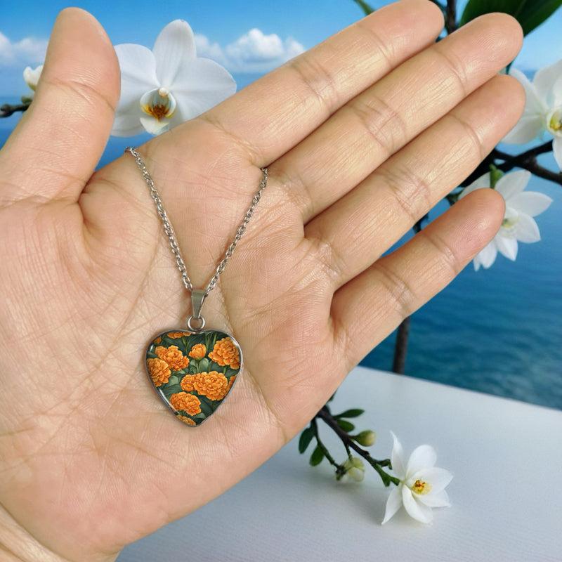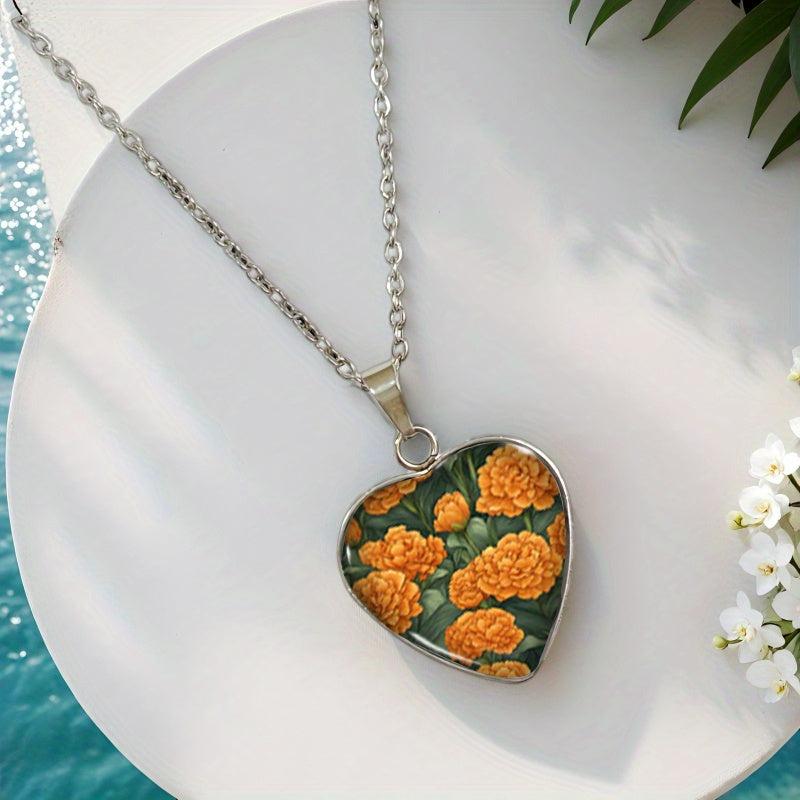 Stainless Steel Pendant Necklace with Orange Tulip Heart Jewelry Gift