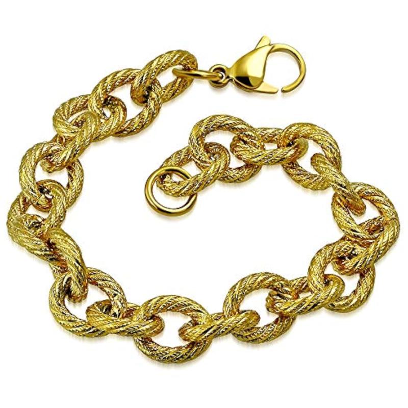This stylish bracelet features a twisted oval link chain design. Made with stainless steel plating, it is durable and fashionable.