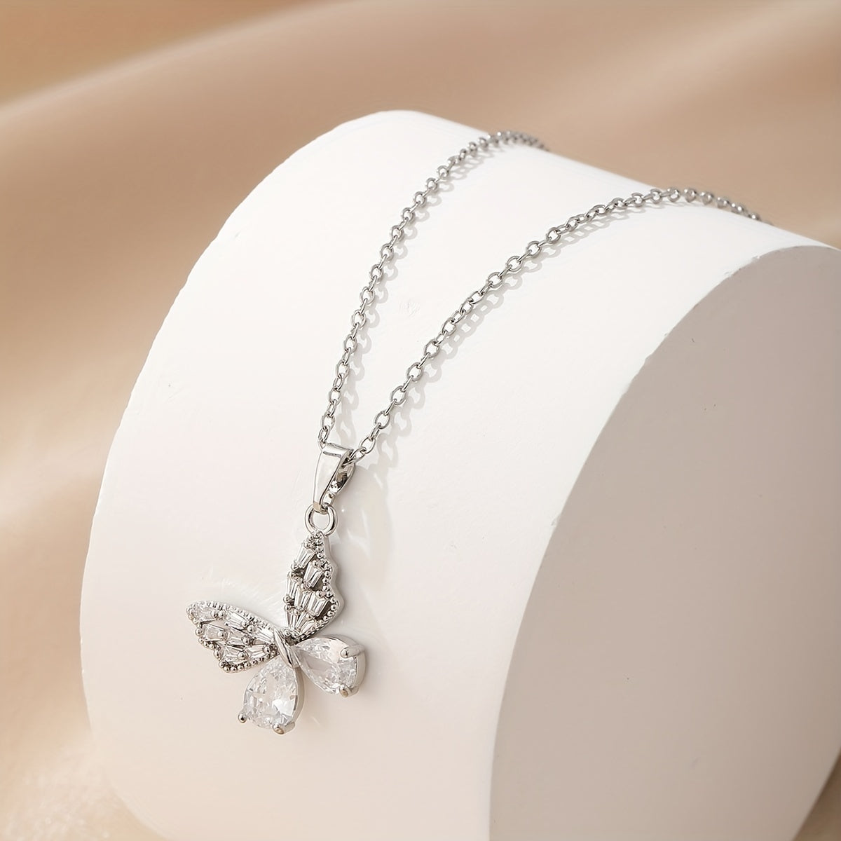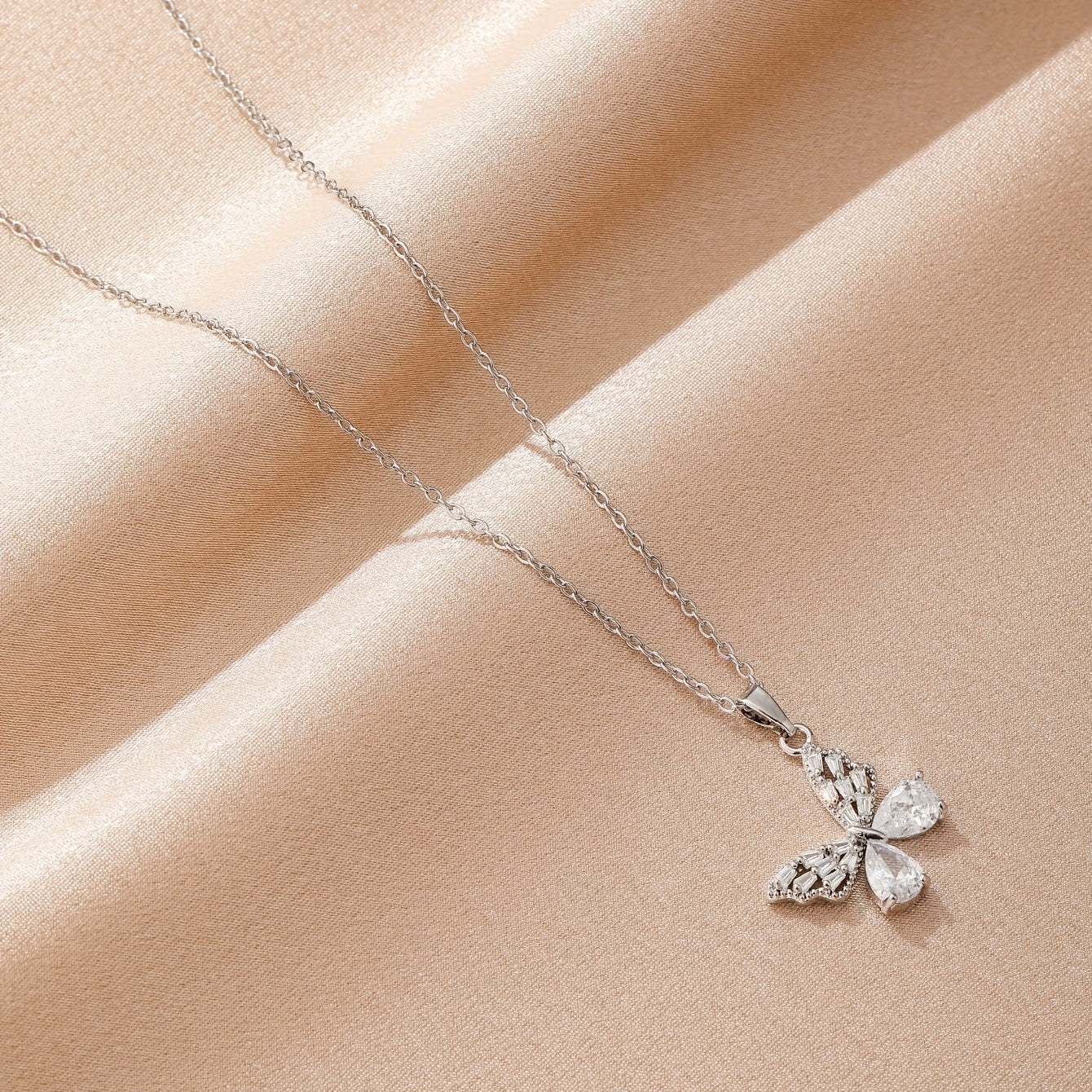 This stainless steel necklace set is a perfect gift for men, couples, or women. The butterfly shape design with rhinestones adds a touch of elegance.