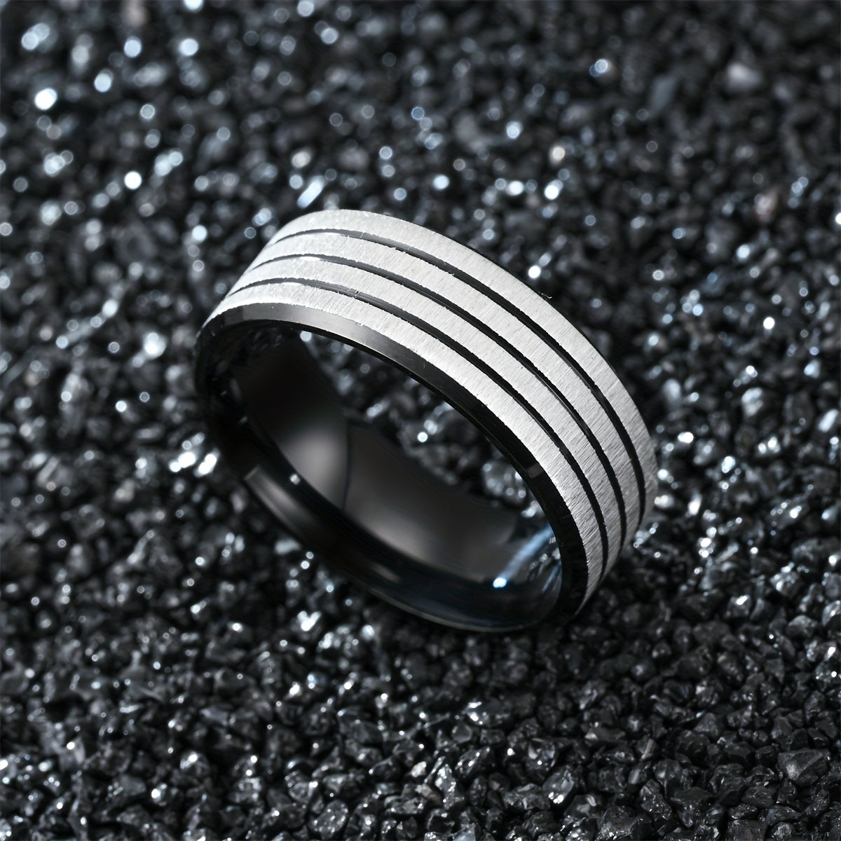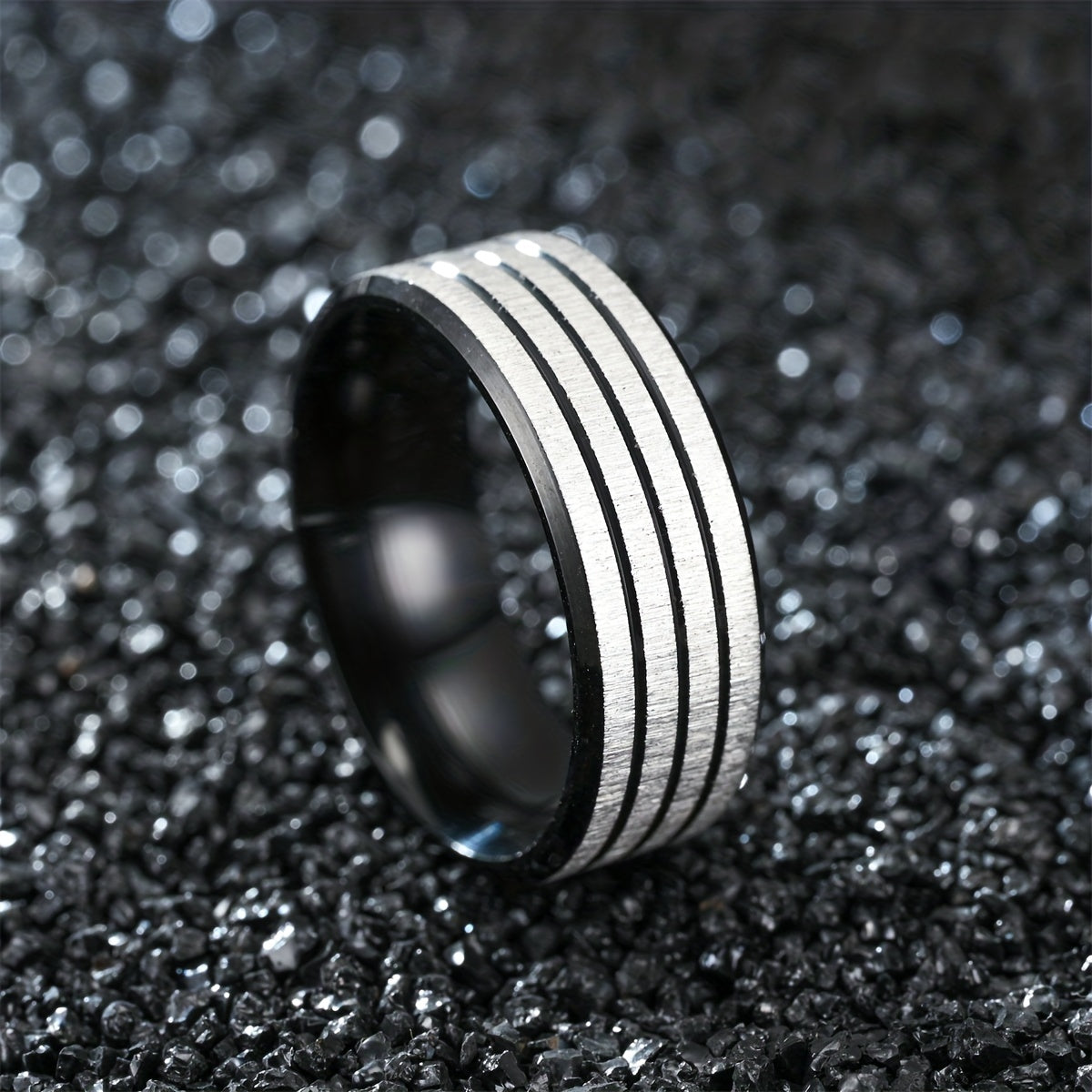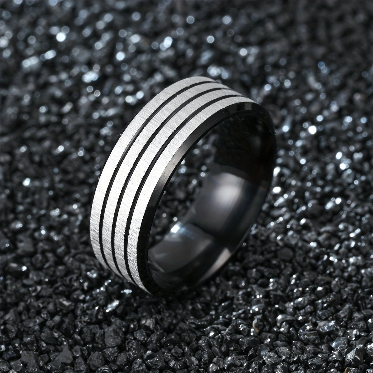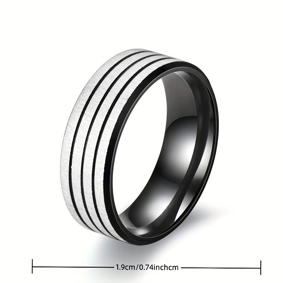 This stainless steel ring is a stylish and durable accessory for men. It features a sleek design with three lines that add a modern touch to any outfit.