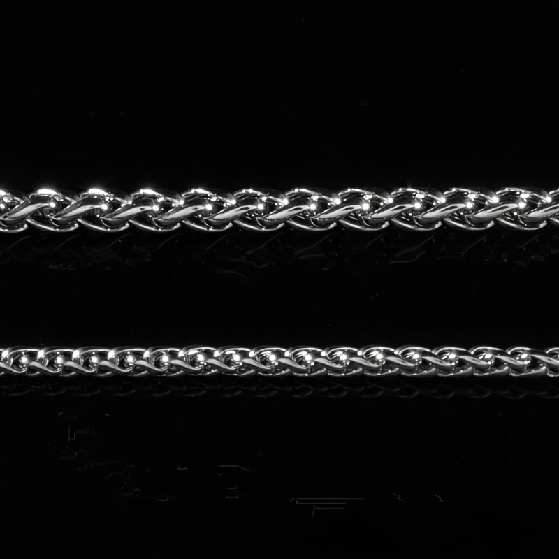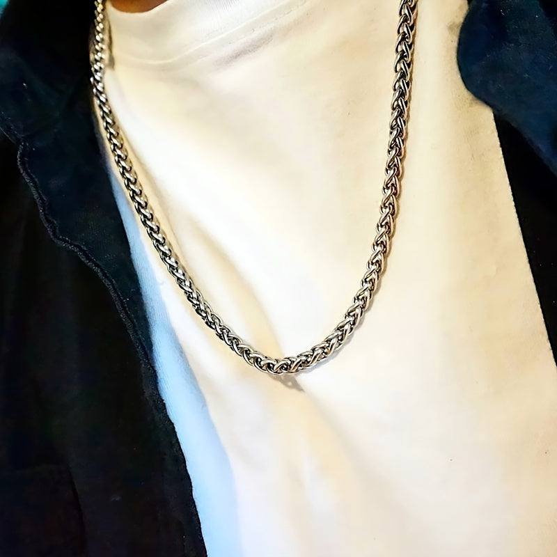 This stainless steel necklace features a twist rope design that adds a stylish touch to any outfit.
