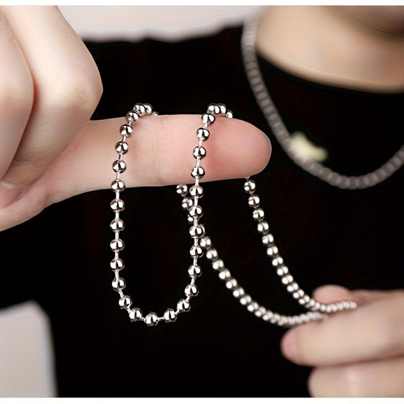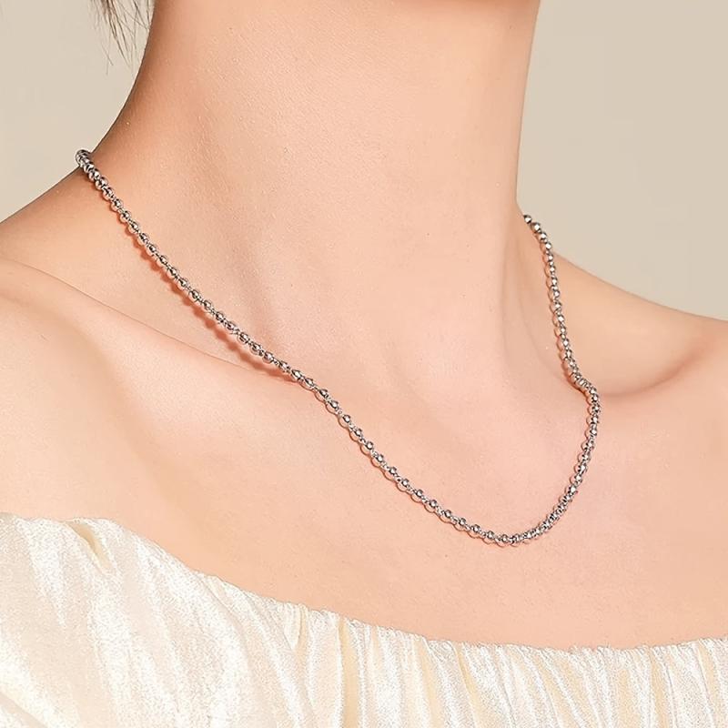 Elevate your style with this fashionable and classic round bead chain necklace. Made of stainless steel, this small round bead chain is perfect for everyday wear and can be easily stacked with other necklaces.