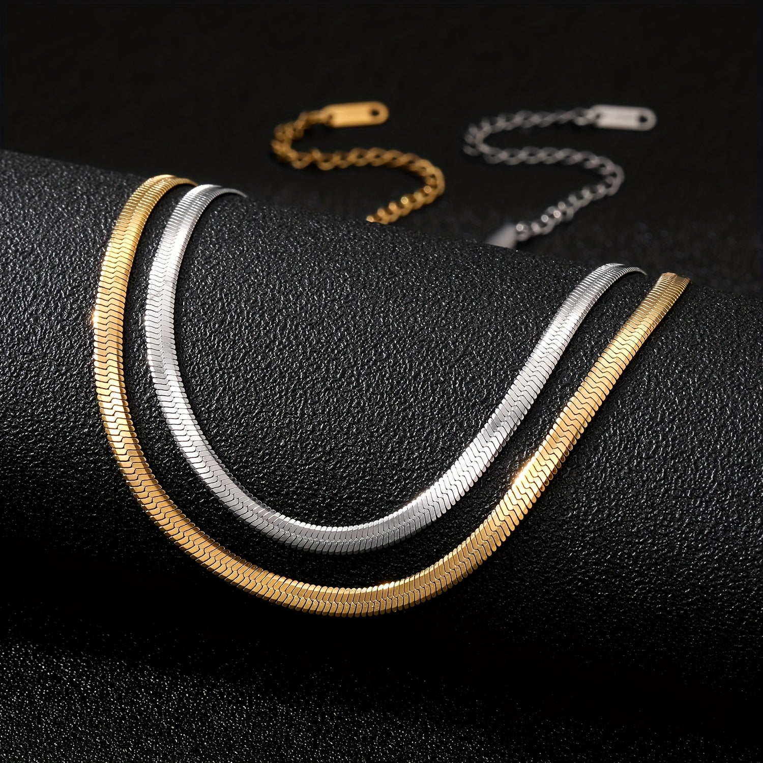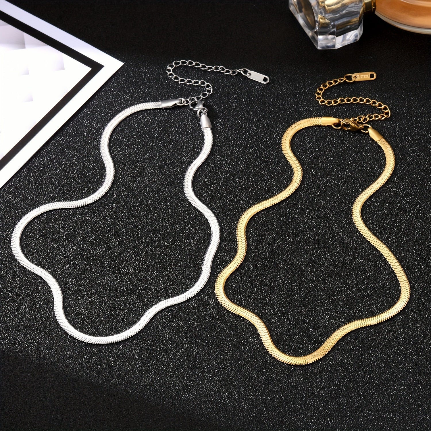 Add a touch of edgy style with this stainless steel snake bone chain necklace. It is a versatile accessory that complements any outfit.
