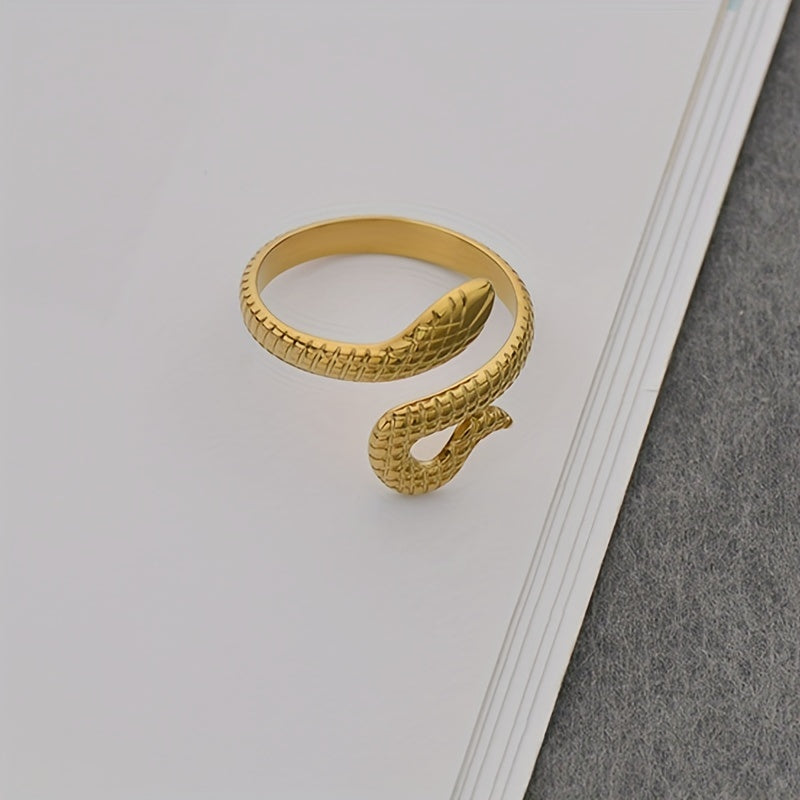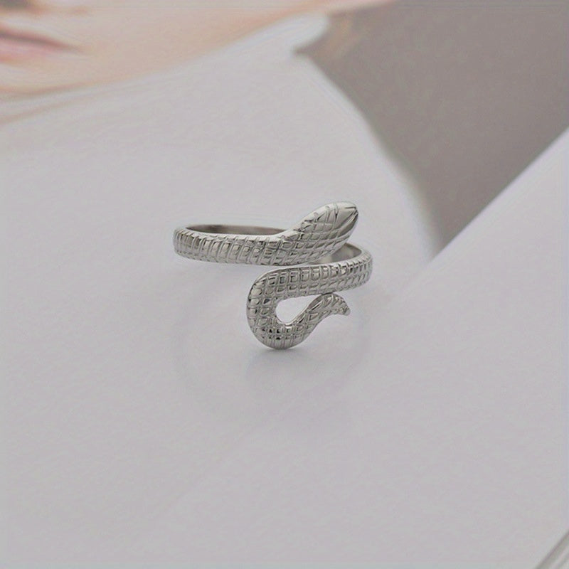 This stainless steel snake couple ring is a unique and creative accessory for men. The open design adds a stylish touch to any outfit.