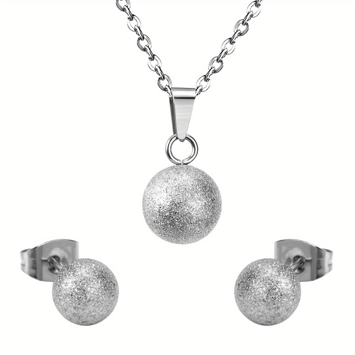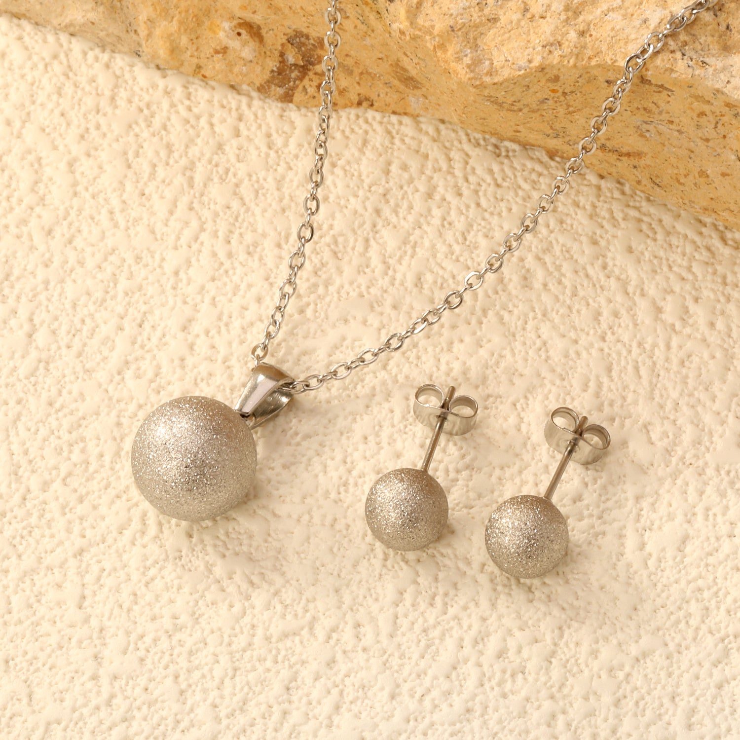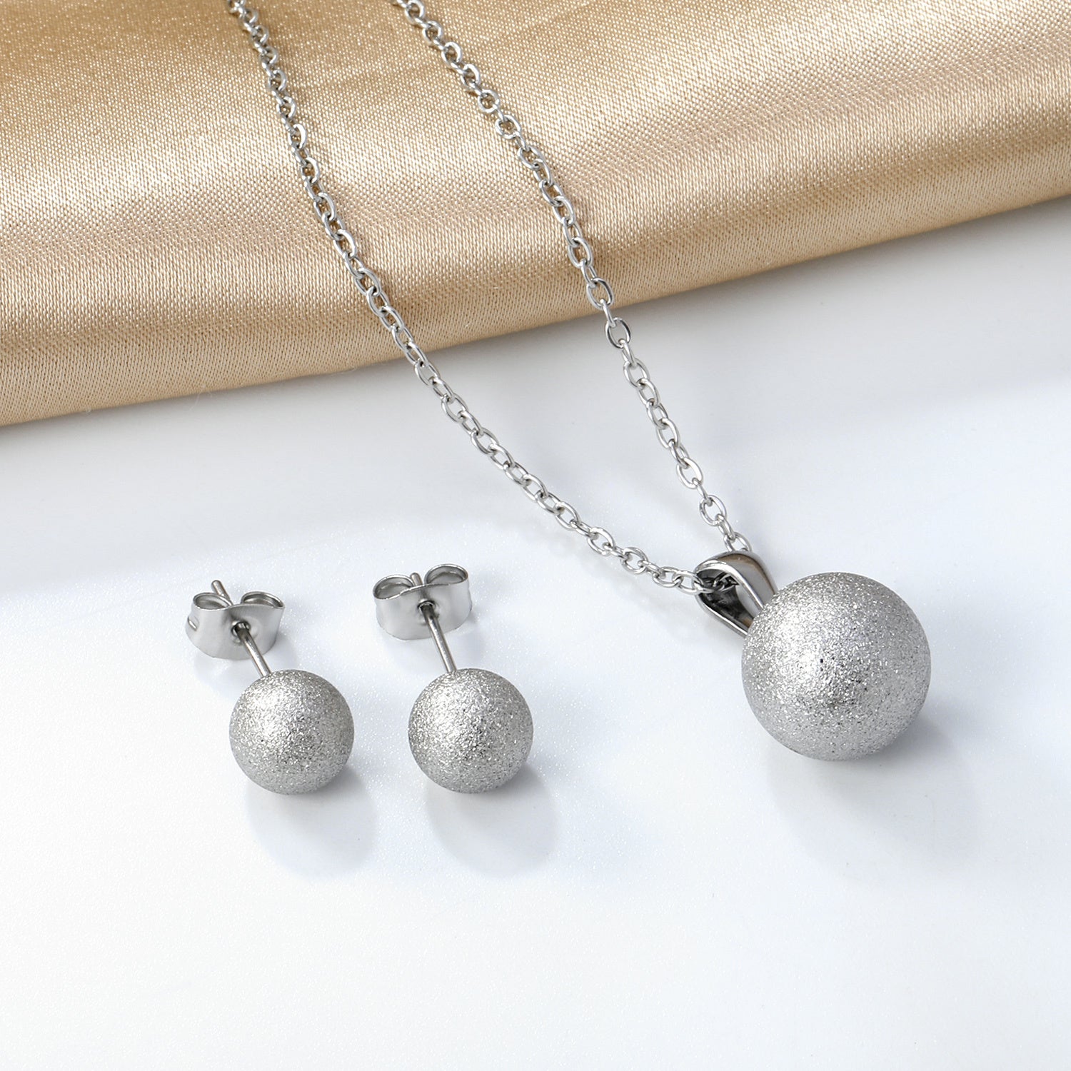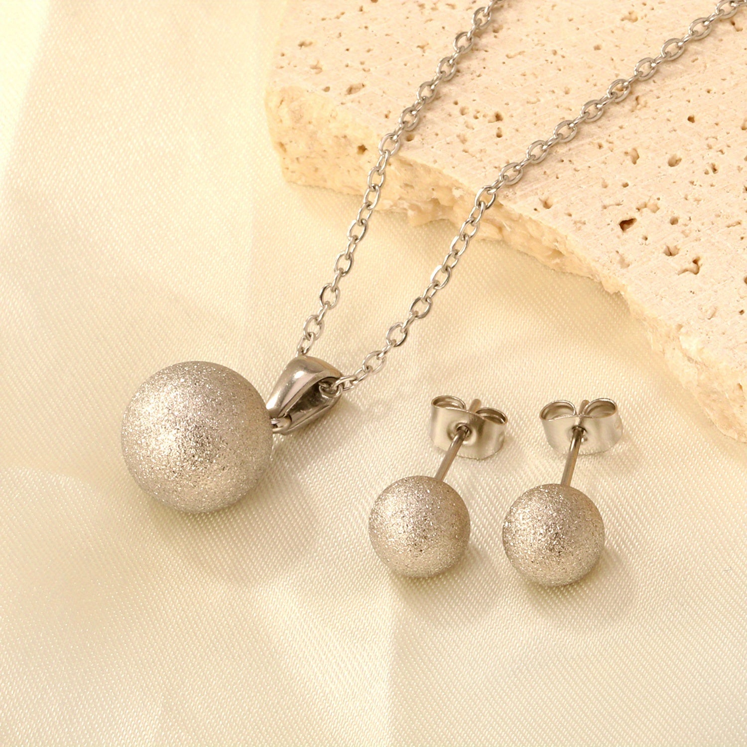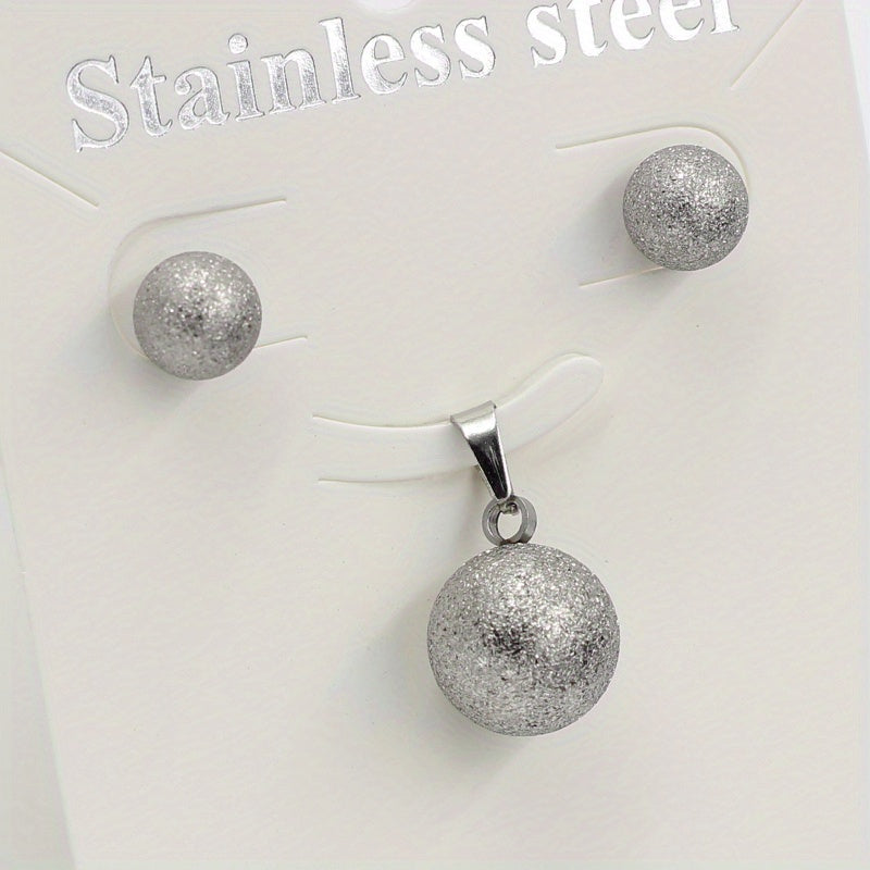 Stainless Steel Spherical Pendant & Stud Earrings Set
