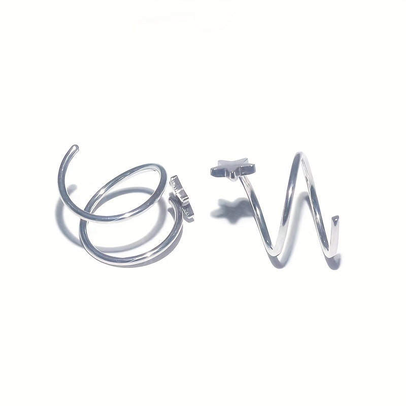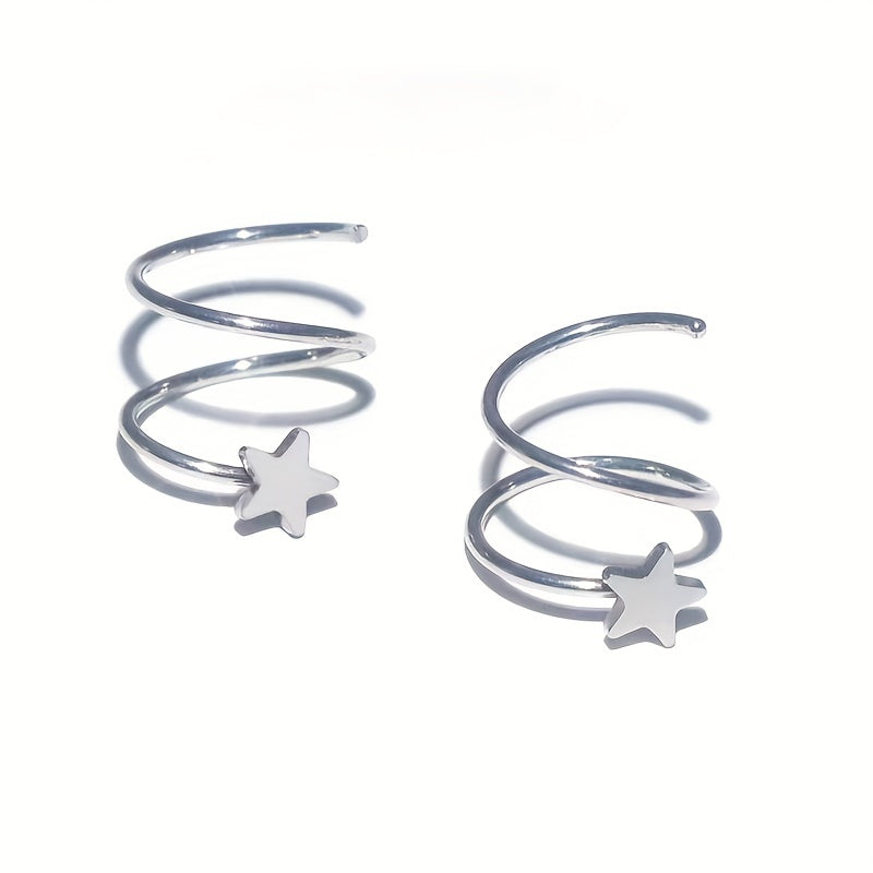 Elevate your style with these trendy stainless steel spiral shooting star ear clips. Perfect for adding a touch of elegance to any outfit.
