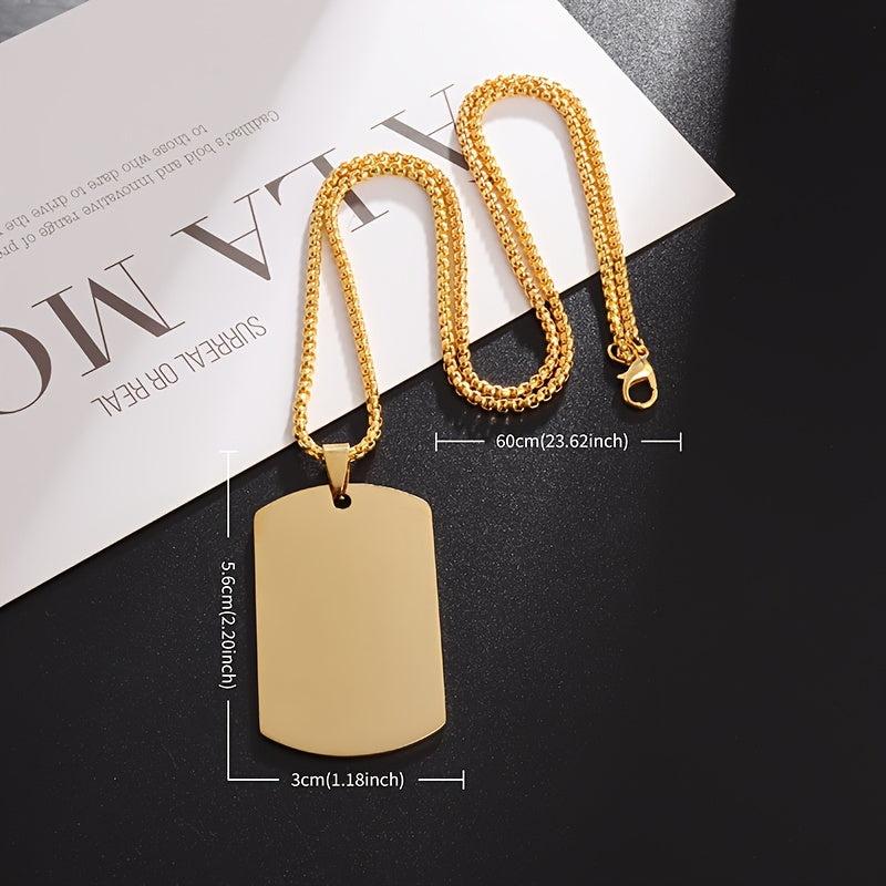 Elegant and sleek square pendant necklace crafted from stainless steel with a polished finish. Available in light gray and golden tones. Durable chain for casual and formal wear.