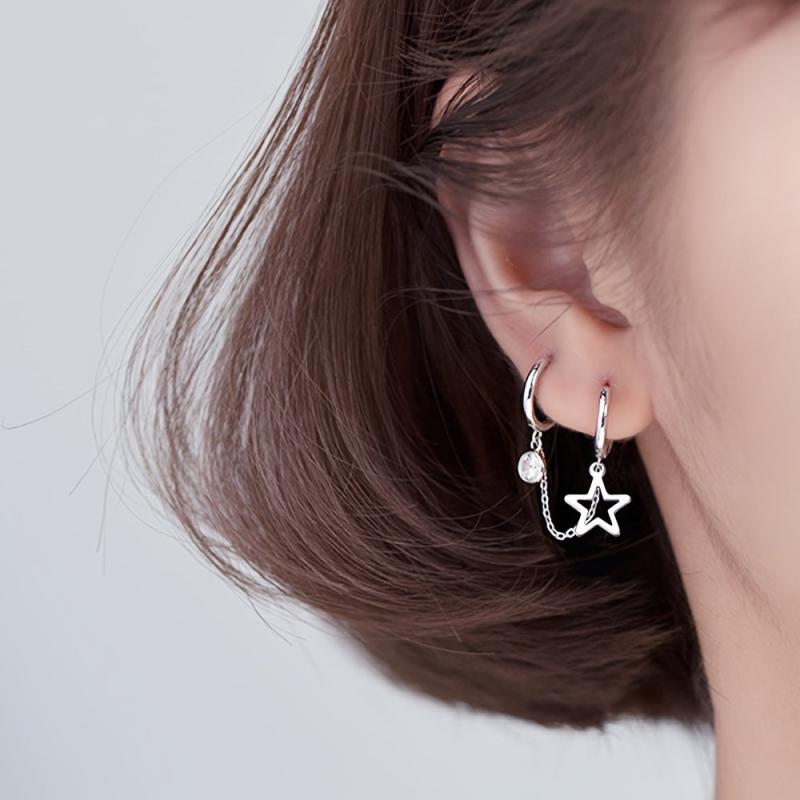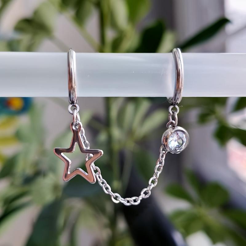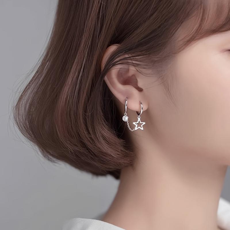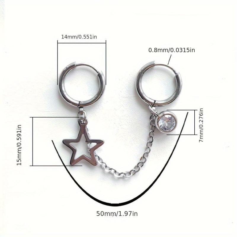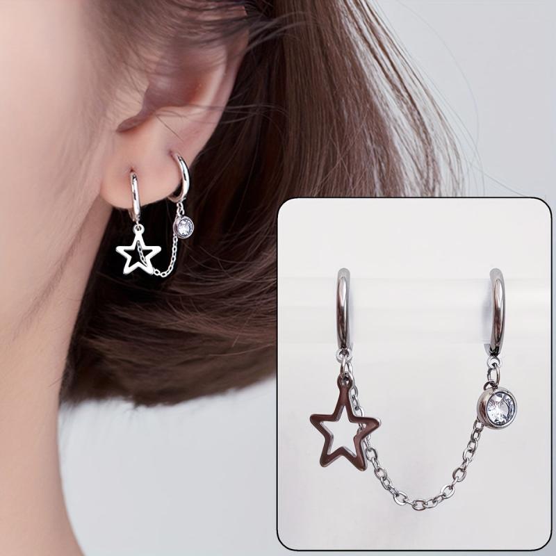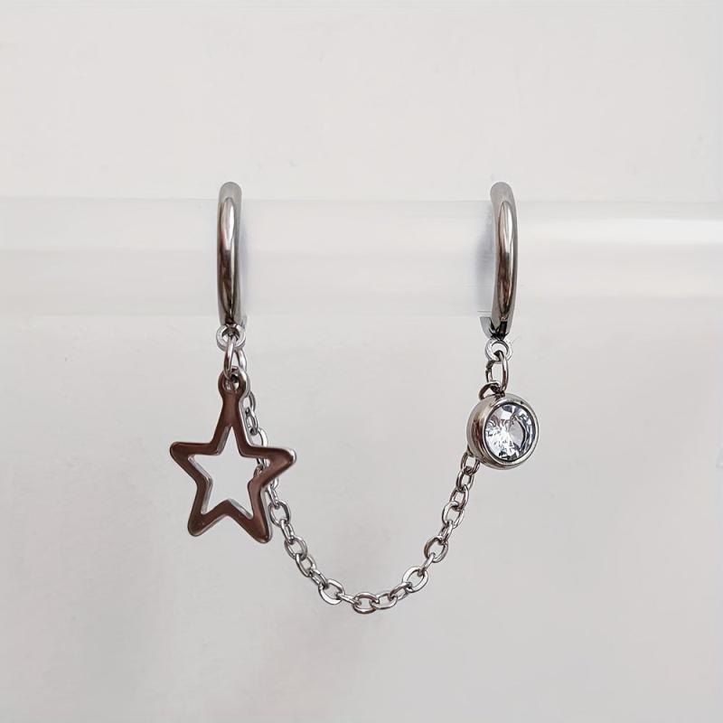 These elegant stainless steel earrings feature a star design with zirconia accents, perfect for parties and Christmas celebrations.