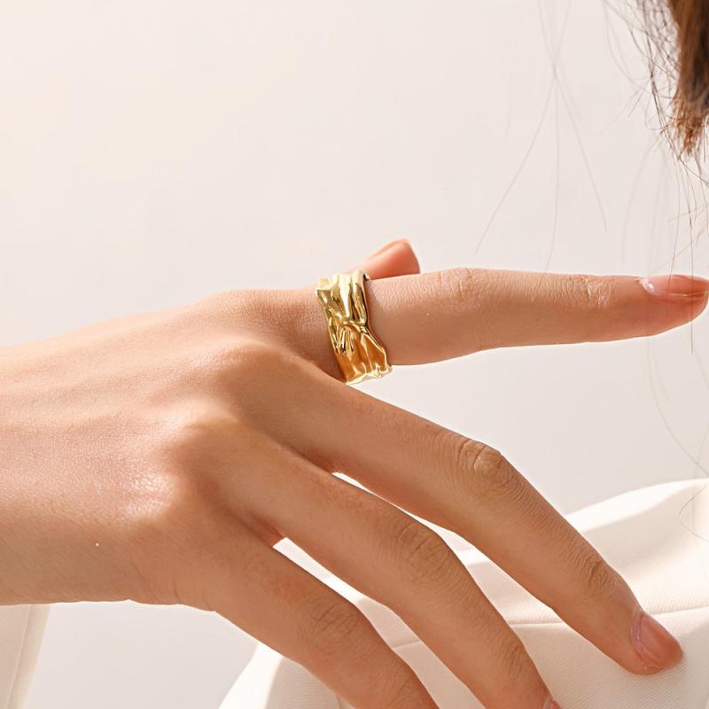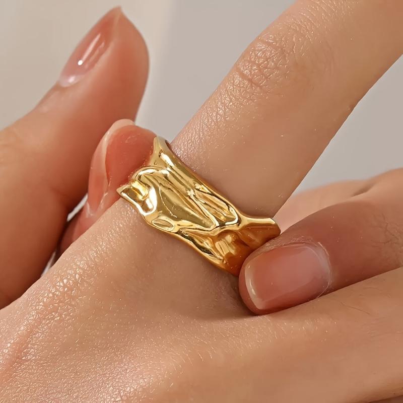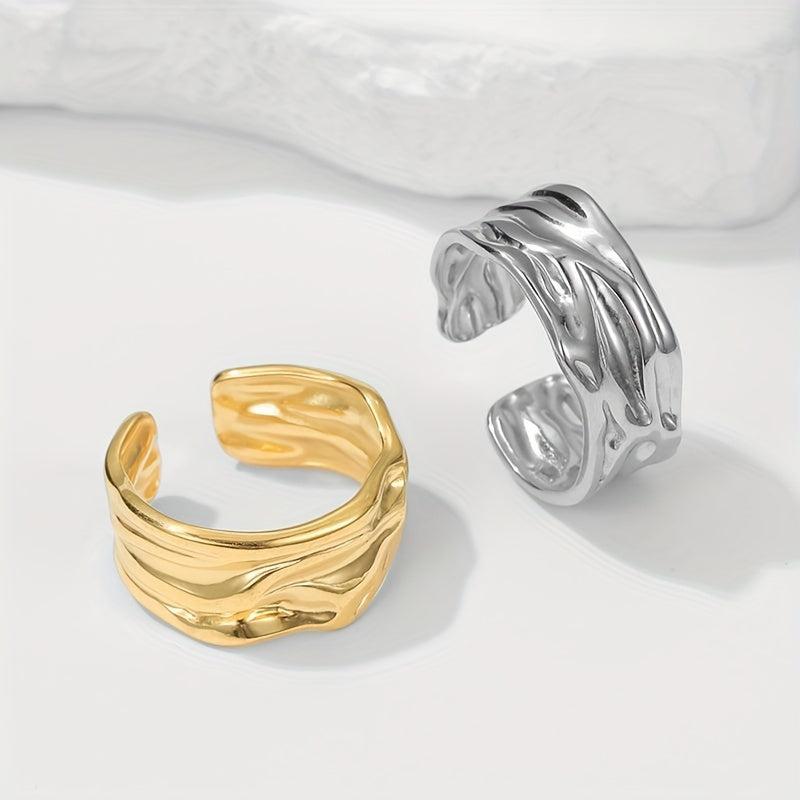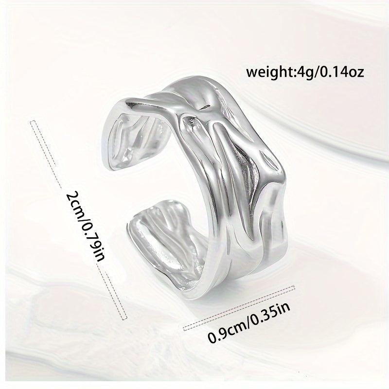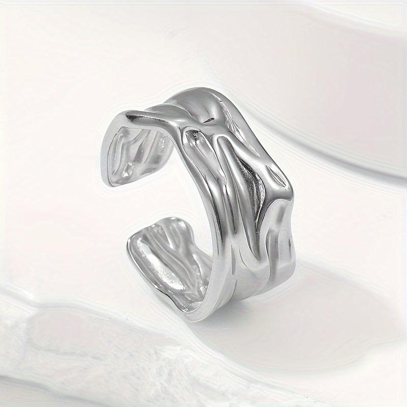 Add a touch of style with this stainless steel textured open adjustable ring.